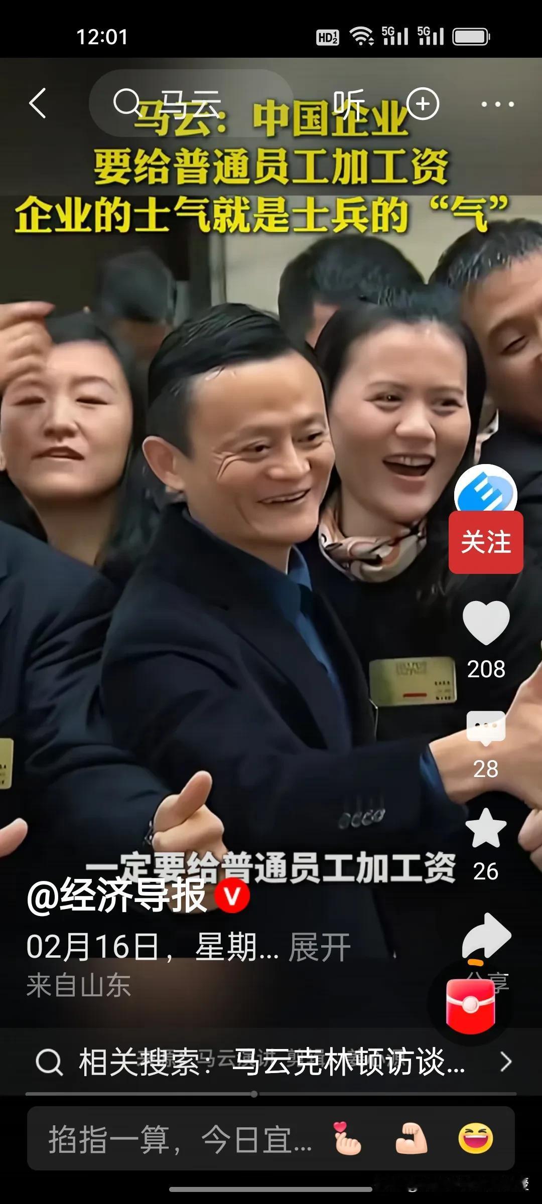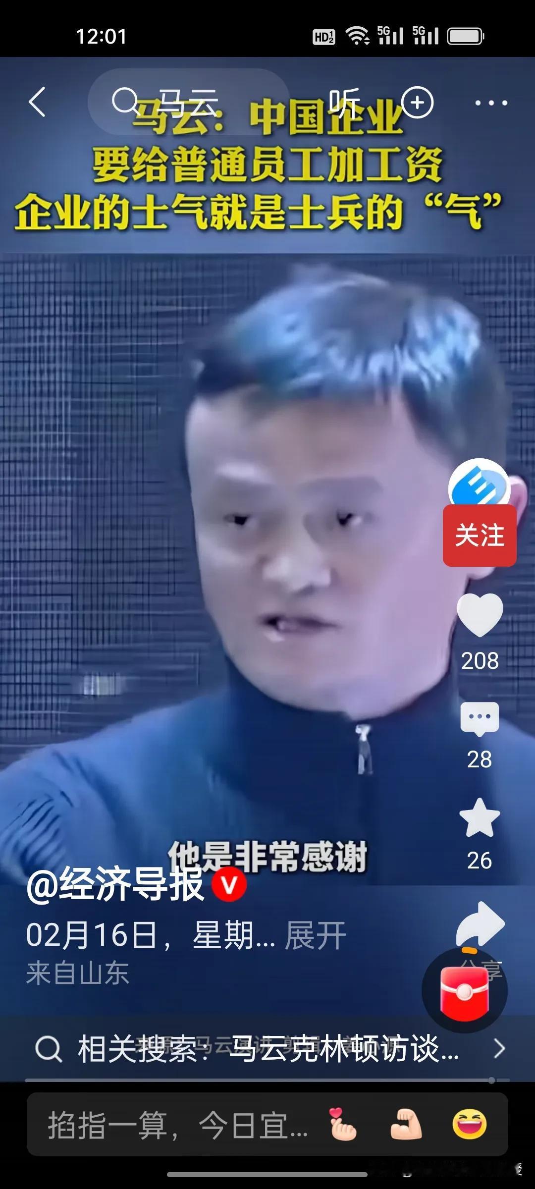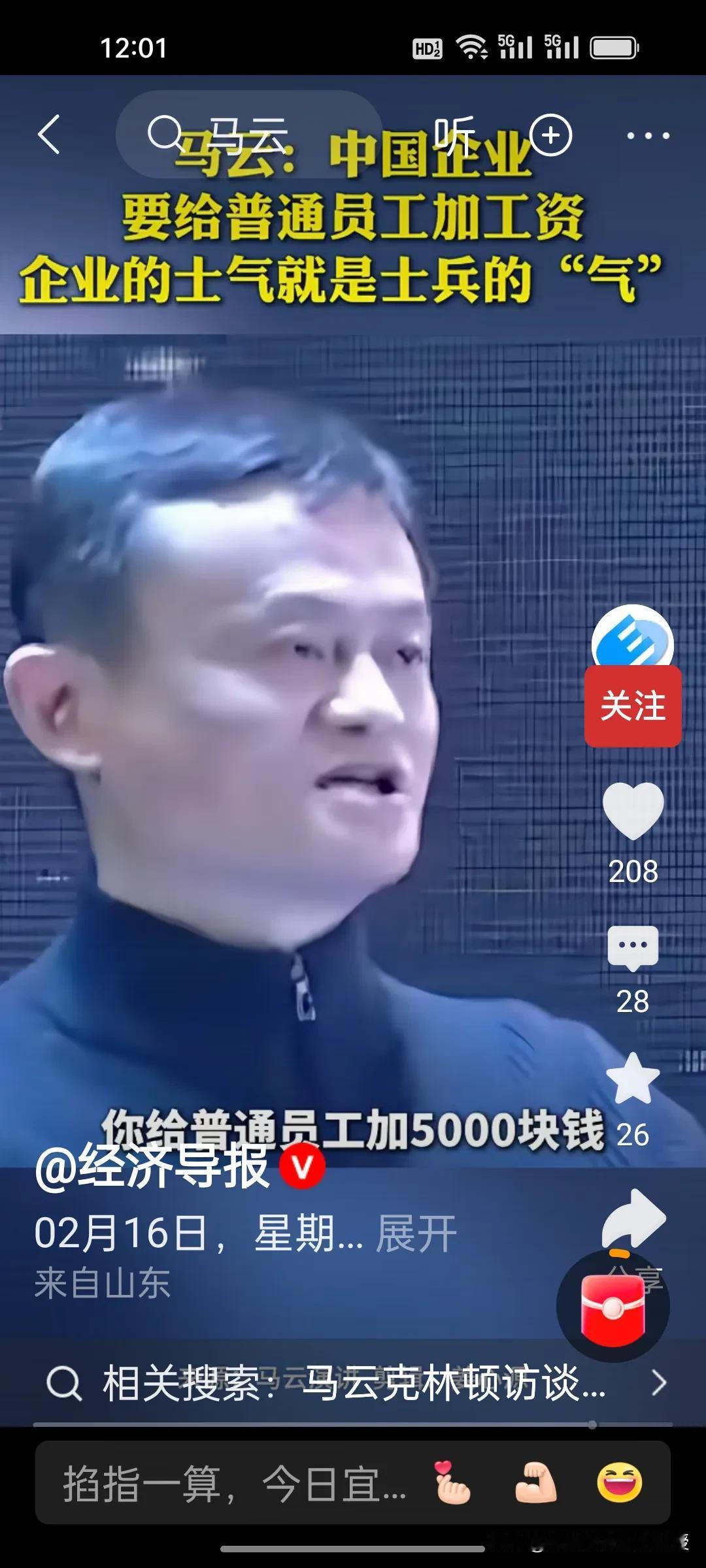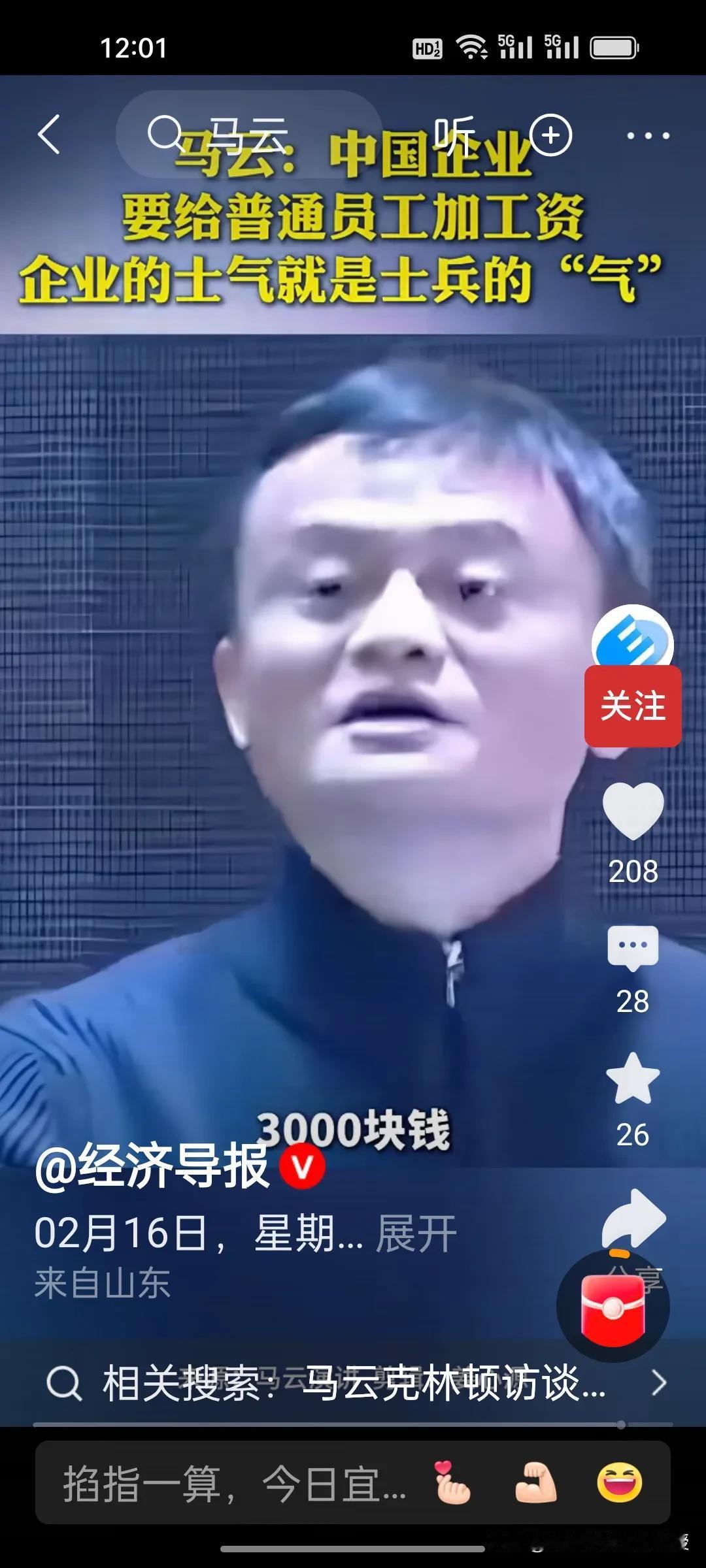 除夕刷屏!马云这番话,戳中多少打工人的心! 今天大年三十,刚刚看到《经济导报》发布的马云访谈视频,瞬间热血沸腾! 马云直言,中国企业要给普通员工加工资,别总盯着高管。企业的士气,就像士兵的“气”,给高管加10万可能没变化,给普通员工加3000、5000,却能点燃整个团队的热情。 这话在除夕听来,格外戳心。真正的企业温度,从来不是少数人的光鲜,而是让基层奋斗者收获满满的实惠与尊重。 阿里普通员工P5,P6年包35–60万、月薪25–35K,在大厂里属第一梯队,跟字节,腾讯,拼多多同档。 这样懂人心、接地气的认知,才是企业长久发展的底气!
