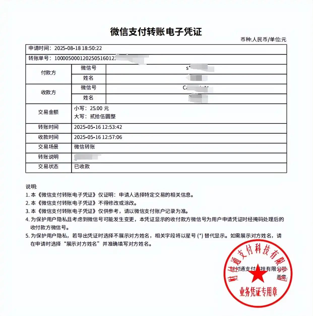 微信转账、借款,这个操作一定要做,不然可能吃大亏。很多人转完账只留截图,一旦删除聊天记录,遇到纠纷很难作为有效证据。其实微信自带具备法律效力的电子凭证,比截图靠谱得多。 操作步骤: 1. 转账时先填写转账说明 2. 对方收款后,打开微信:我 → 服务 → 钱包 → 账单 3. 筛选转账记录,点击申请转账电子凭证 4. 提交后即可获取官方凭证,妥善保存 记住:转账说明+电子凭证,大额、借钱时一定要留好。