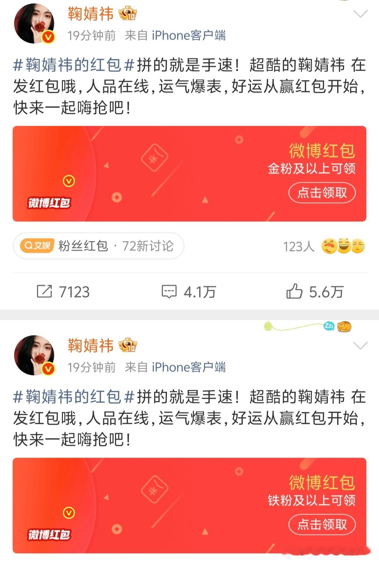 今天的明星红包可太热闹了,算是互联网过大年了哈哈哈哈~其中鞠婧祎在不到两分钟发了
