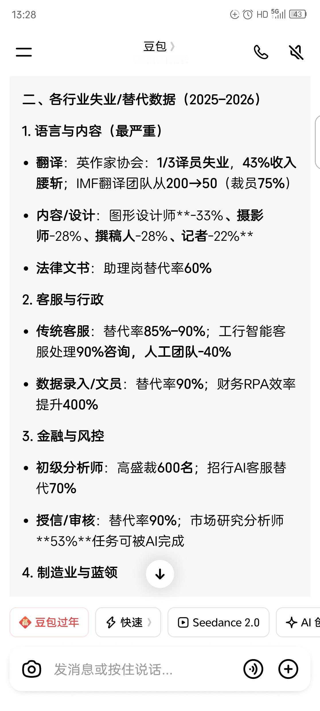 如果AI只是和人抢饭碗,那它的方向就是错误的,结果是灾难的。 如果AI代替了人,但又不能确实增加确实的生活资料,那是灾难性的,那只是一次财富的重新分配,把很多人的财富转移到AI公司和那些资本手里。 现在的AI,真的没有创造多少“新财富” AI到今天为止,最大的能力不是“创造更多东西”,而是“少用人”。 它不发明新需求 ​不凭空变出粮食、能源、房子 ​不扩大社会总蛋糕 它做的只有一件事: 用更低的成本,把原来人干的活干了,把那些人的工作和生活资料抢走。 这从AI的每一步进步社会的反映就可以看出。 当CHATGDP做出第一张逼真的图片时,摄影师和图片制造者看到了绝望和失业。 当AI能把各种语言相互翻译时,很多语言从业者看到的是绝望。 当AI能做出比肩好莱坞动画的影片时,连好莱坞的从业者都感到了威胁。 …… 可以说,AI的每一次进步,都惊喜了眼睛但大脑里却是一片绝望。就像看到《三体》里的水滴,惊叹之后就是绝望。 这就不是增长, 这是掠夺式效率。  这只是一次财富重新分配 而且是从上往下吸。 以前:老板 → 员工 → 消费 → 经济循环 ​ 现在:老板+AI → 极少数员工 → 消费萎缩 AI把中间那一大群人的收入,直接转移给了资本和技术巨头。 结果就是: 少数人越来越富 ​大多数人失去收入、失去议价权 ​社会总购买力下降 ​最后连老板的东西都卖不出去 这不是发展, 这是经济血液循环被掐断。  最可怕的还不是失业,是“无用化” 当人不能通过劳动获得尊严、收入、存在感时: 不是穷不穷的问题 ​是人有没有价值的问题 AI如果只替代、不创造、不分享, 那它就是一台制造阶级鸿沟、制造绝望的机器。 唯一能避免灾难的,只有一条路 AI带来的收益,必须全社会共享。 对AI超额利润征税 ​用税收做全民基本保障、教育、再就业 ​不让资本把技术红利全吞掉 如果做不到,未来—— 少数人掌控AI,大多数人被抛弃 就一定会到来。  我可以很负责任地说: 这不是悲观。 现在绝大多数吹捧AI的人,都在回避这个核心矛盾。