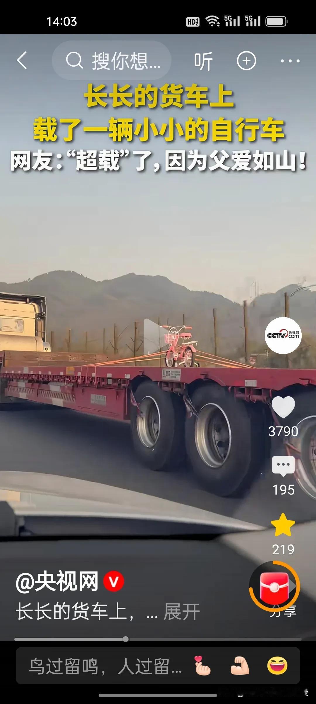 这一幕,看哭全网!货车上的童车,载满如山父爱! 刚刚被《央视网》转发的画面破防了!长长的货车上,一件货物都没有,却绑着一辆小小的粉色童车。 这哪里是拉年货,分明是一位父亲沉甸甸的爱。他奔波千里谋生计,却没忘记把孩子的期待牢牢系在心头。网友说这车“超载”了,载的是比货物更重的父爱。 父爱从不用言语张扬,都藏在这些笨拙又温暖的牵挂里。致敬每一位负重前行的父亲!