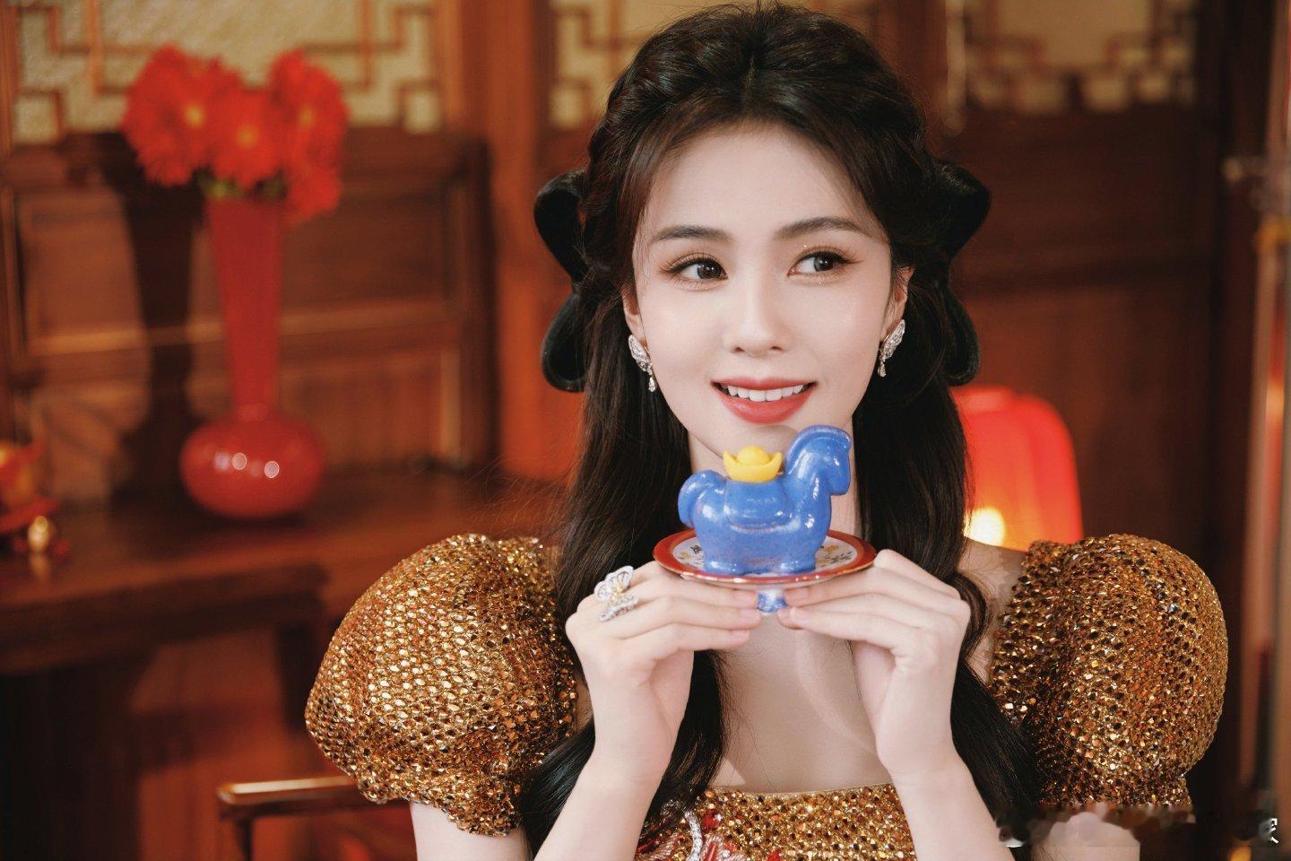 白鹿工作室新春出图,白鹿蝴蝶结鎏金裙 好漂亮期待鹿鹿节目