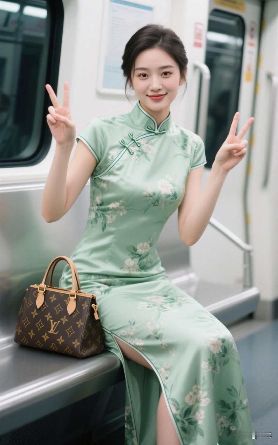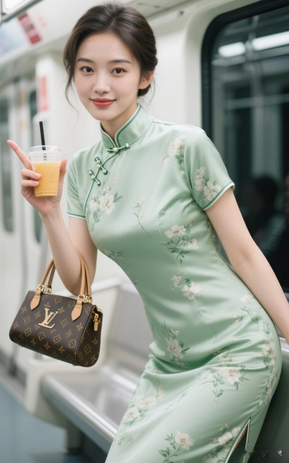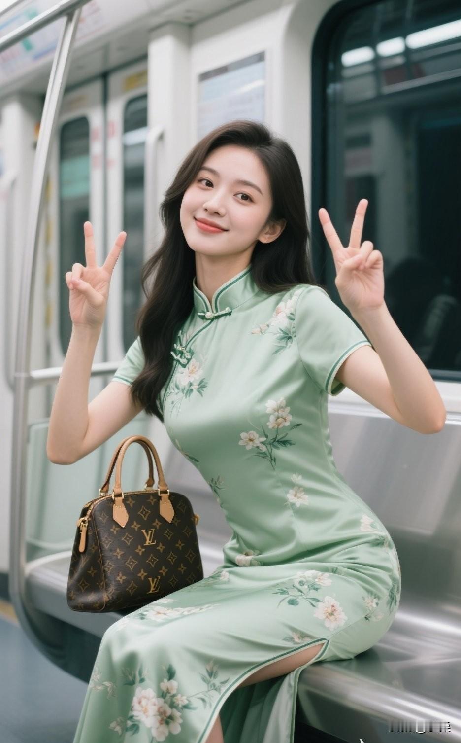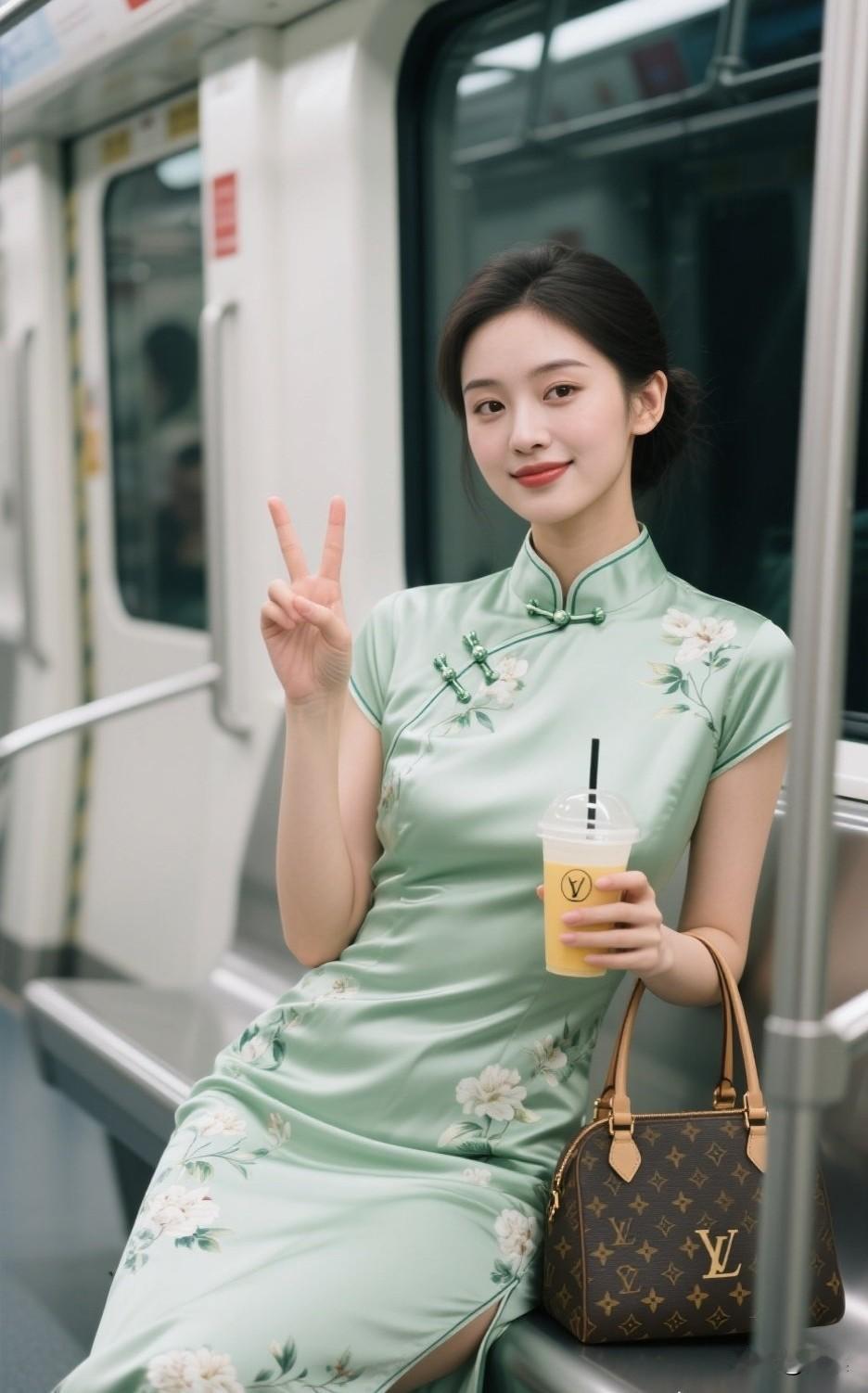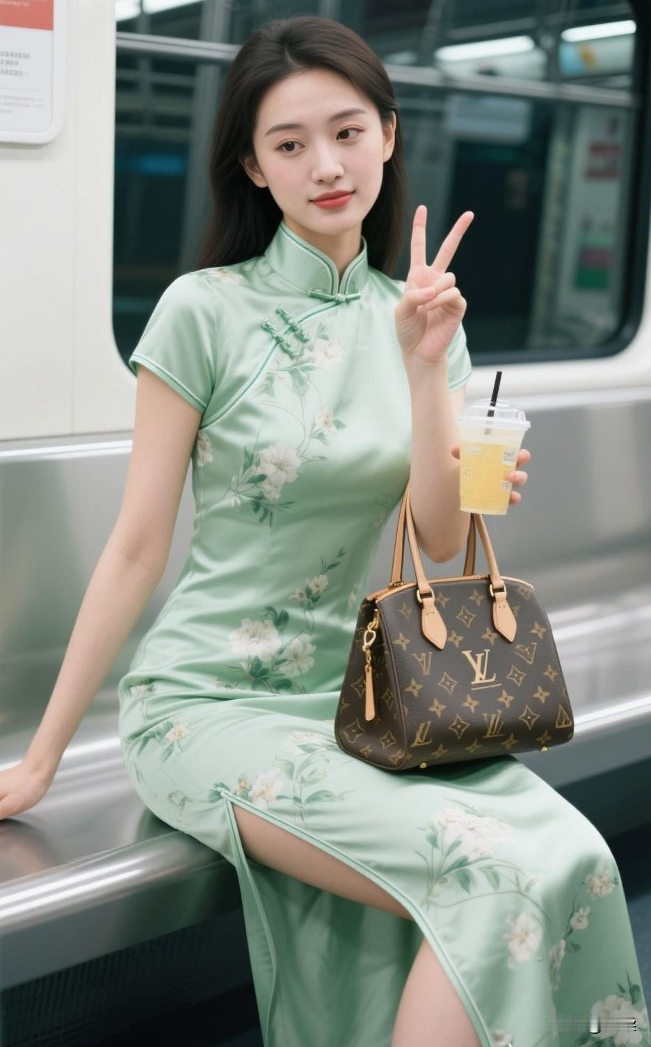 地铁上的优雅时光,花裙与LV手袋的完美搭配