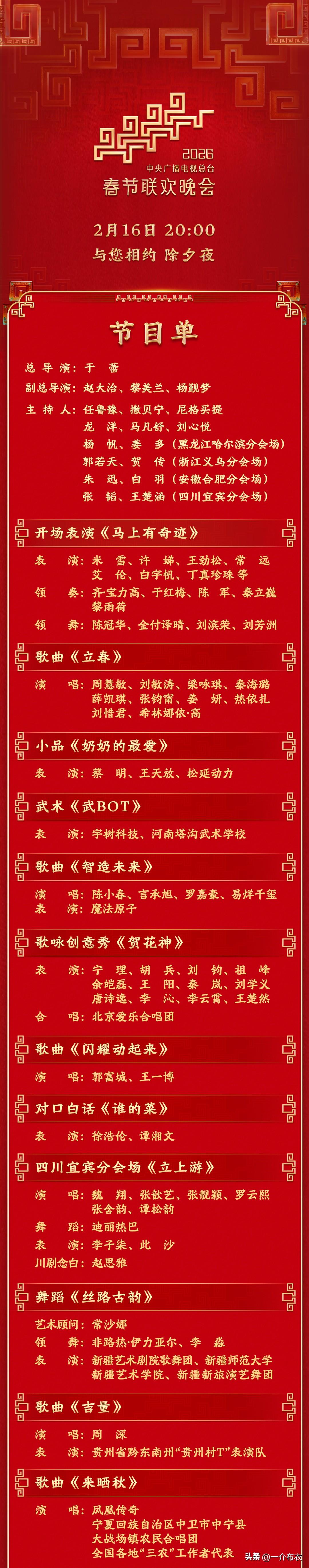 食之无味,弃之可惜。 1、相声没了,现在叫对口白话,取代了以前冯巩、岳云鹏的生态位。 2、小品最大咖,蔡明老师,关于人形机器人,前面还有一个宇树科技机器人跳舞。(果然人形机器人最先应用起来还得是文娱产业) 3、沈腾没来了,估计去宣传电影去了。 4、请了老外来唱歌了,虽然但是还是感觉有点别扭。 5、依旧专业演员去唱歌,流量为王。 我感觉拿出14年春晚放一遍,收视率都能和今晚的差不多。