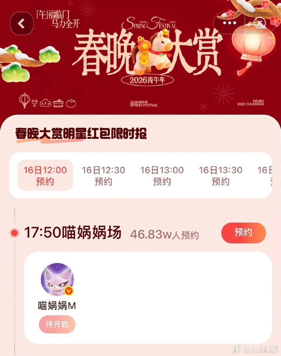 喵娲娲发30万红包陈哲远你有对手了 新晋宠粉官上线!从下午14:40开始发红包,一直发到晚上19:50,一共有十一波,总计30万,快定好闹钟来财!我的新春电子年货