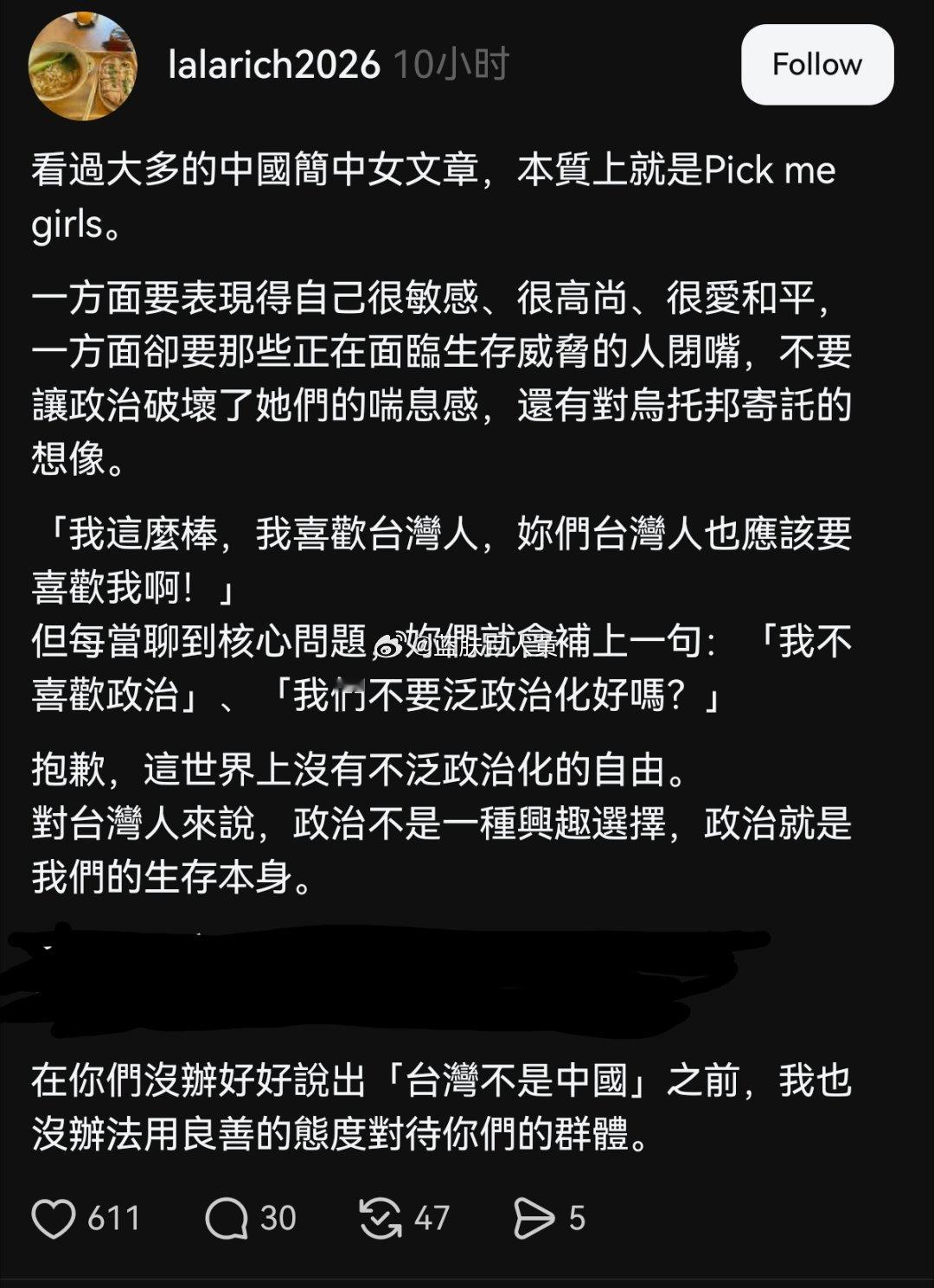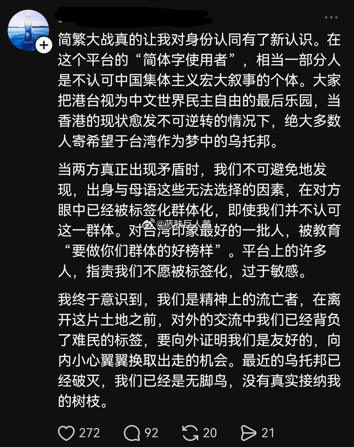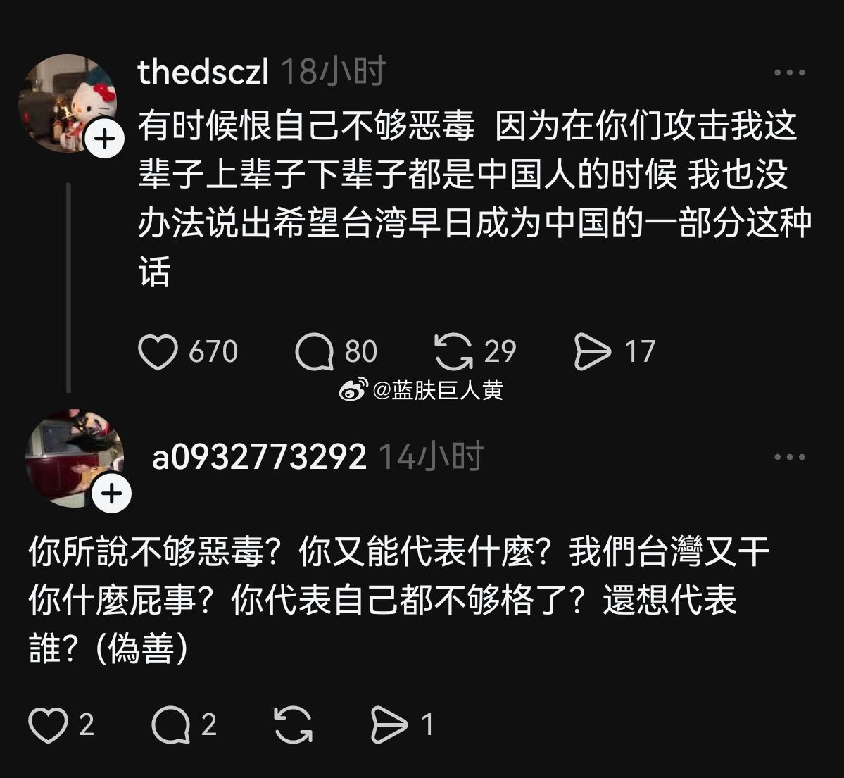 某台湾三流女演员的“请做简体字的好榜样”事件后,我算是见识到了原来简中还有这么一批死皮赖脸倒贴台湾青鸟的反贼,而且青鸟还不要他们