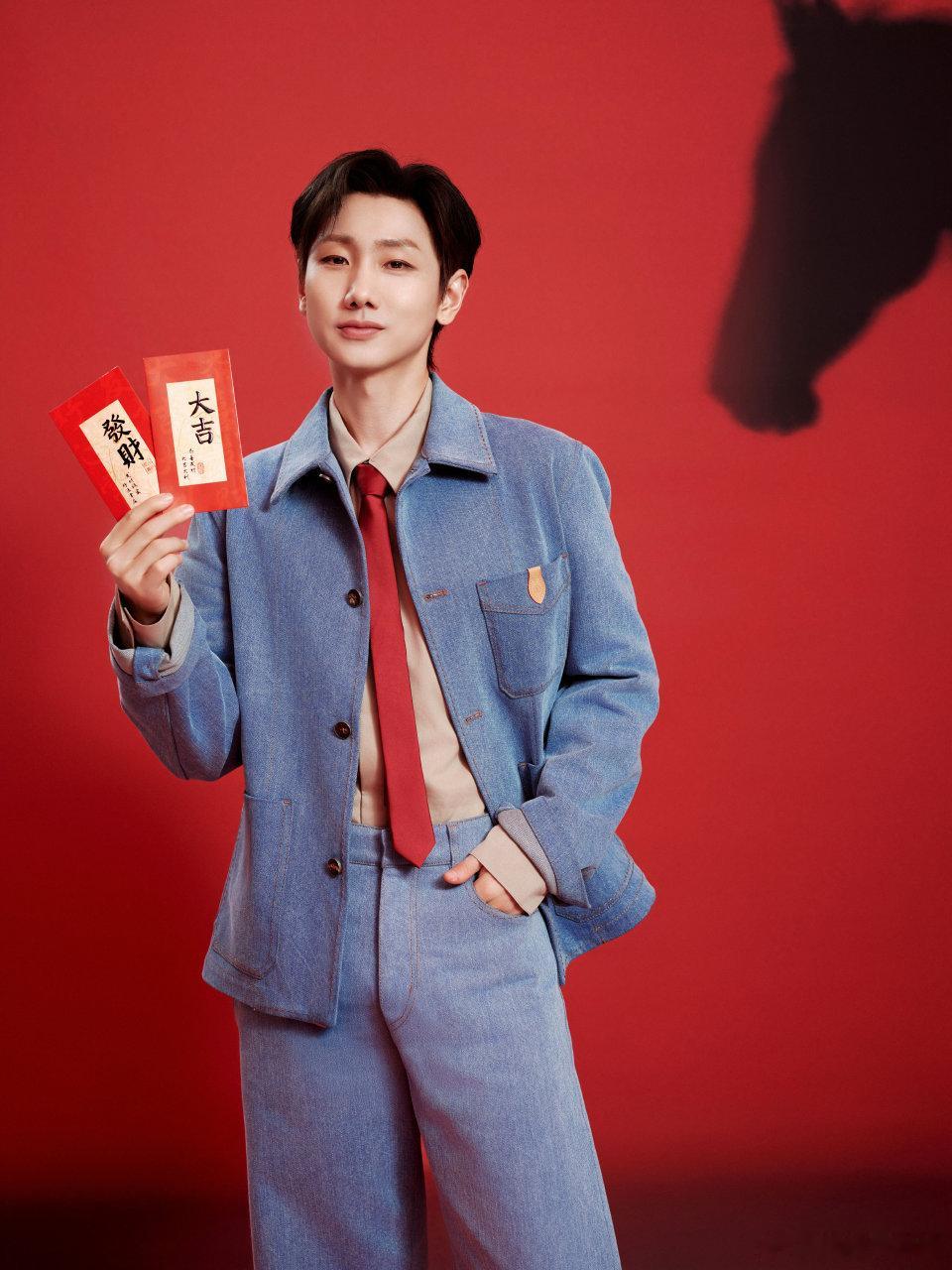 汪苏泷马年春晚造型汪苏泷这组马年春晚造型太戳人!浅蓝牛仔套装清爽利落,红领带点缀出满分年味,手持剪纸与福字的模样温润又俊朗。今晚他将亮相微音乐剧《每道光》,这般雅致格调,已然提前锁住我的视线!春晚