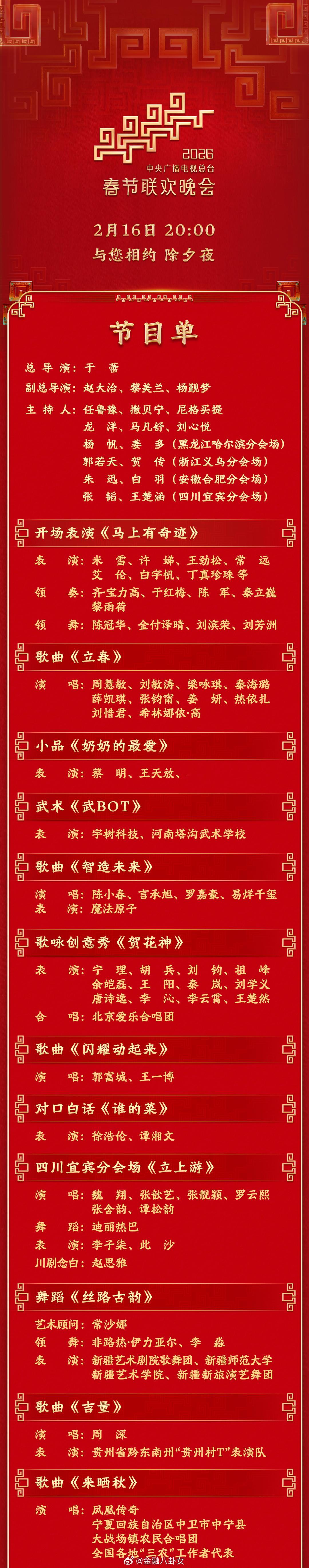 春晚节目单2026年春晚节目单来了!你最期待哪个节目?