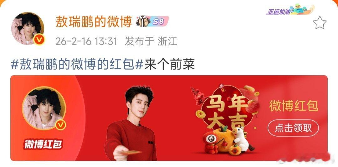 敖瑞鹏发红包还有前菜哈哈哈哈这操作太会了!但笑着笑着就哭了,因为我连前菜的影子都没见到 敖瑞鹏正菜能不能开个后门!