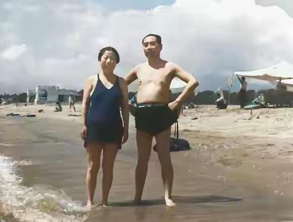 周总理、邓颖超夫妇在北戴河的恩爱瞬间,照片拍摄于1958年,新中国成立后,周总理处理着新中国的大小事务,经常连轴转,最忙碌的时候,周总理要连续工作30多个小时,很少有机会可以这样放松。周总理因为胳膊受过伤,不能游泳,每次去浴场休息,大多都是在那儿看文件,或约人谈话,鼓励工作人员办事一定要细致周到。