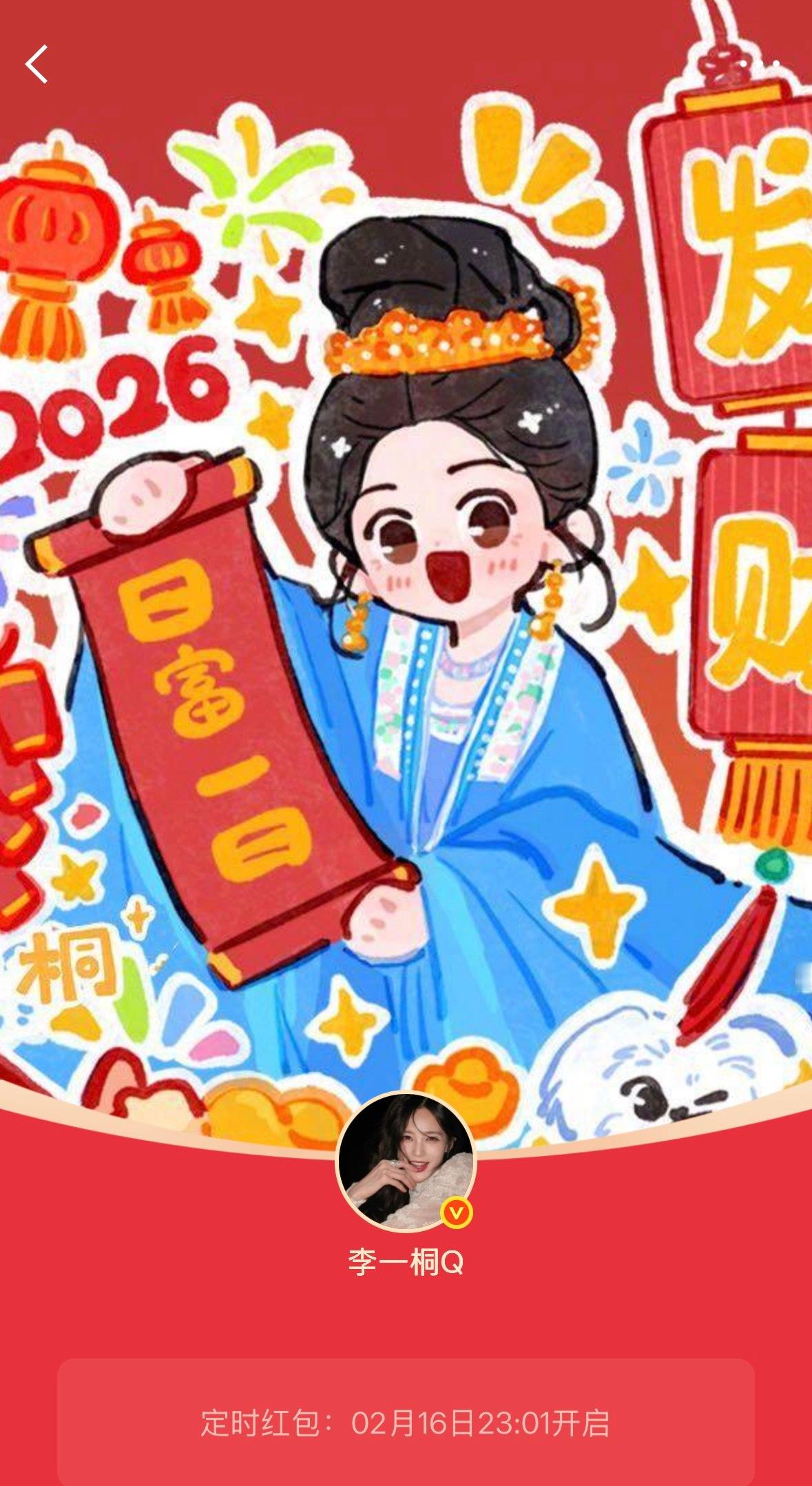 李一桐发错成定时红包又连续发了两个18888今晚定时18888🧧23:01准时