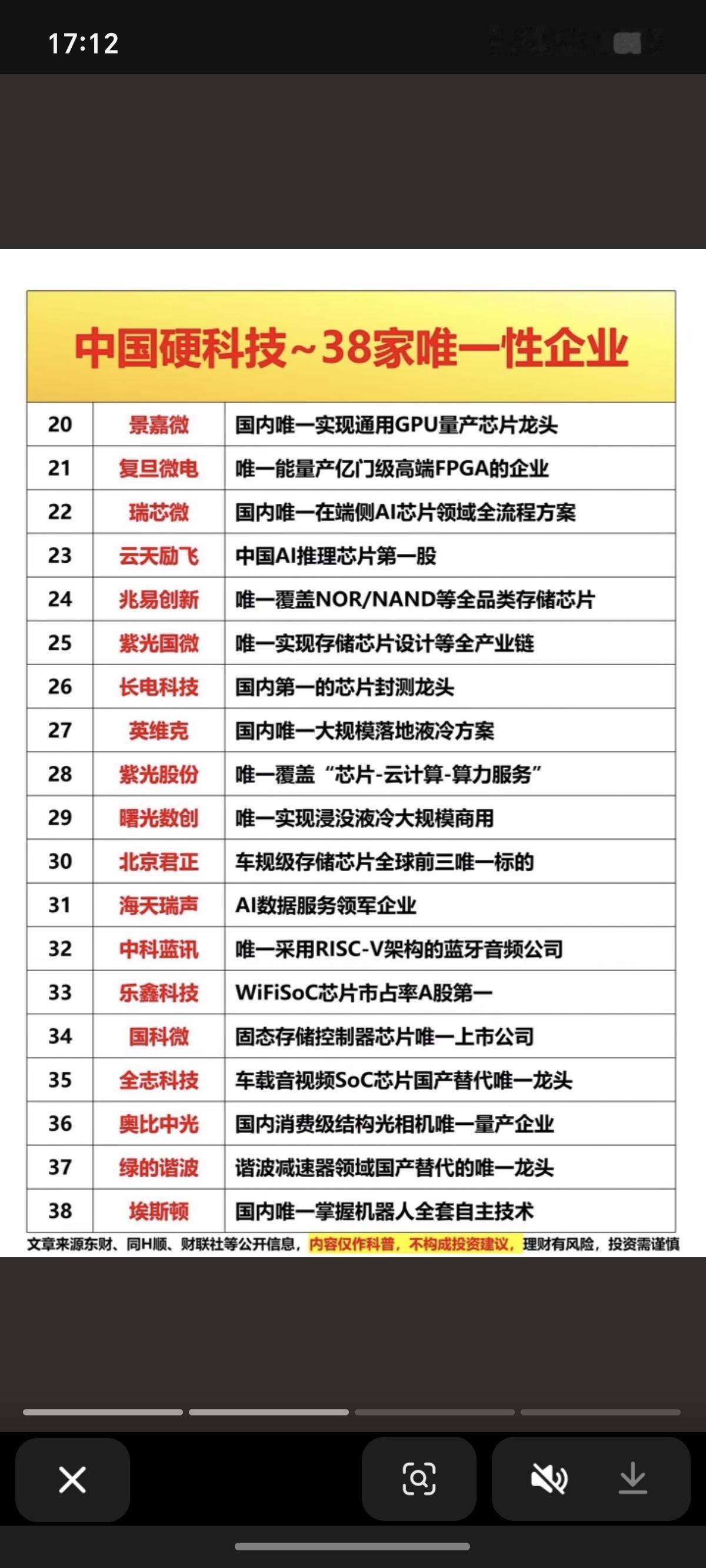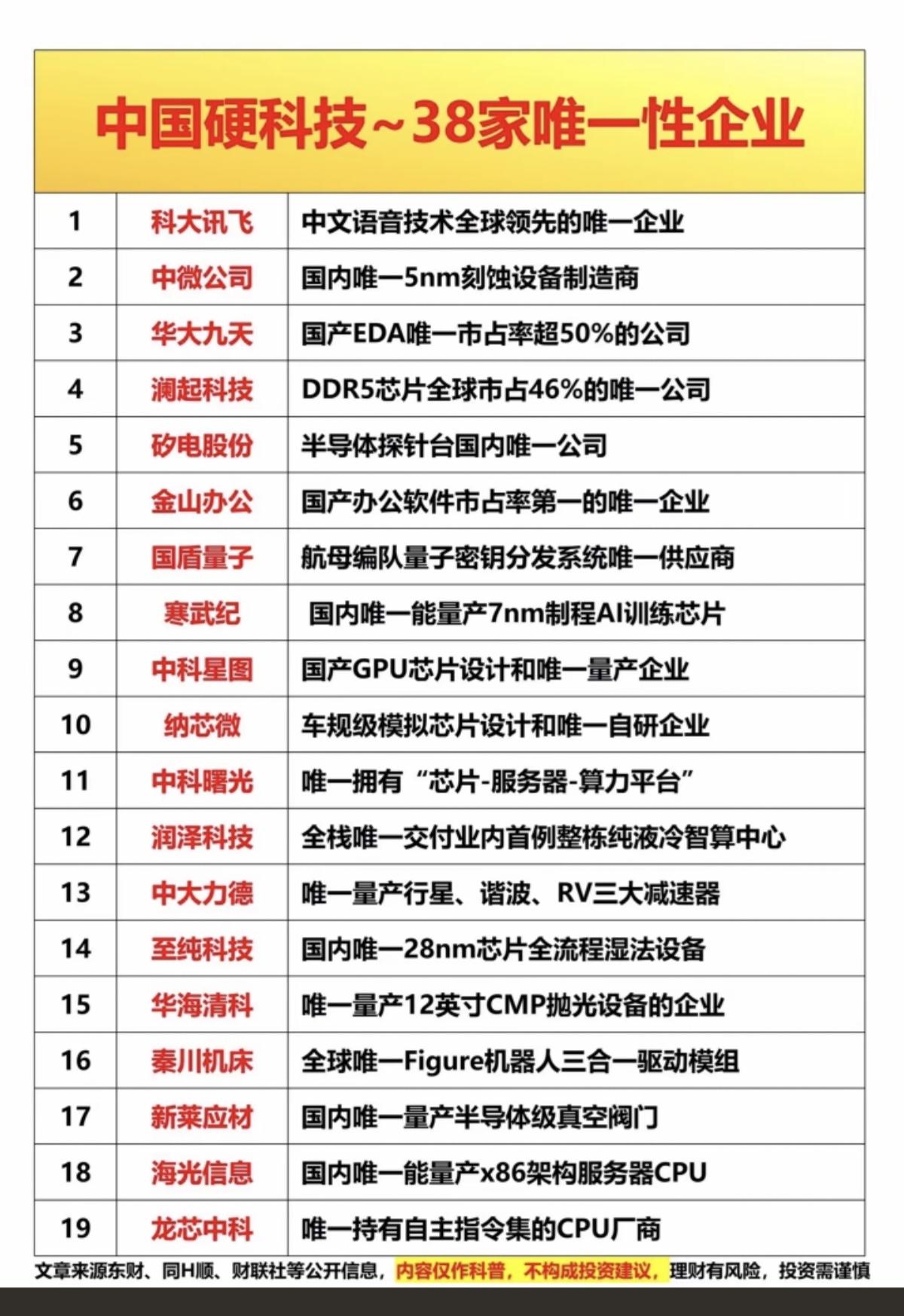中国硬科技!38家唯一性公司名单! 唯一性,稀缺性!上市公司汇总: 科技引领未来!