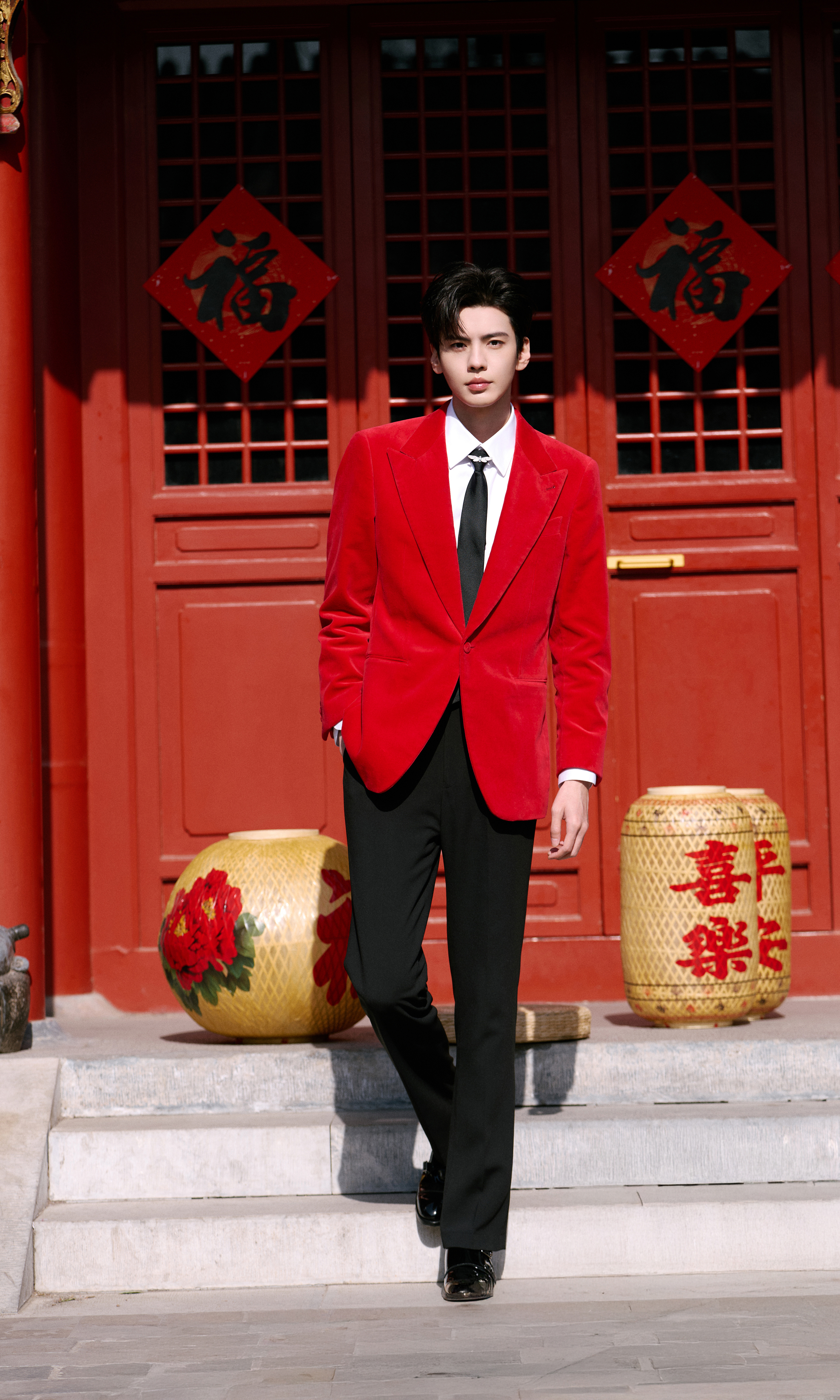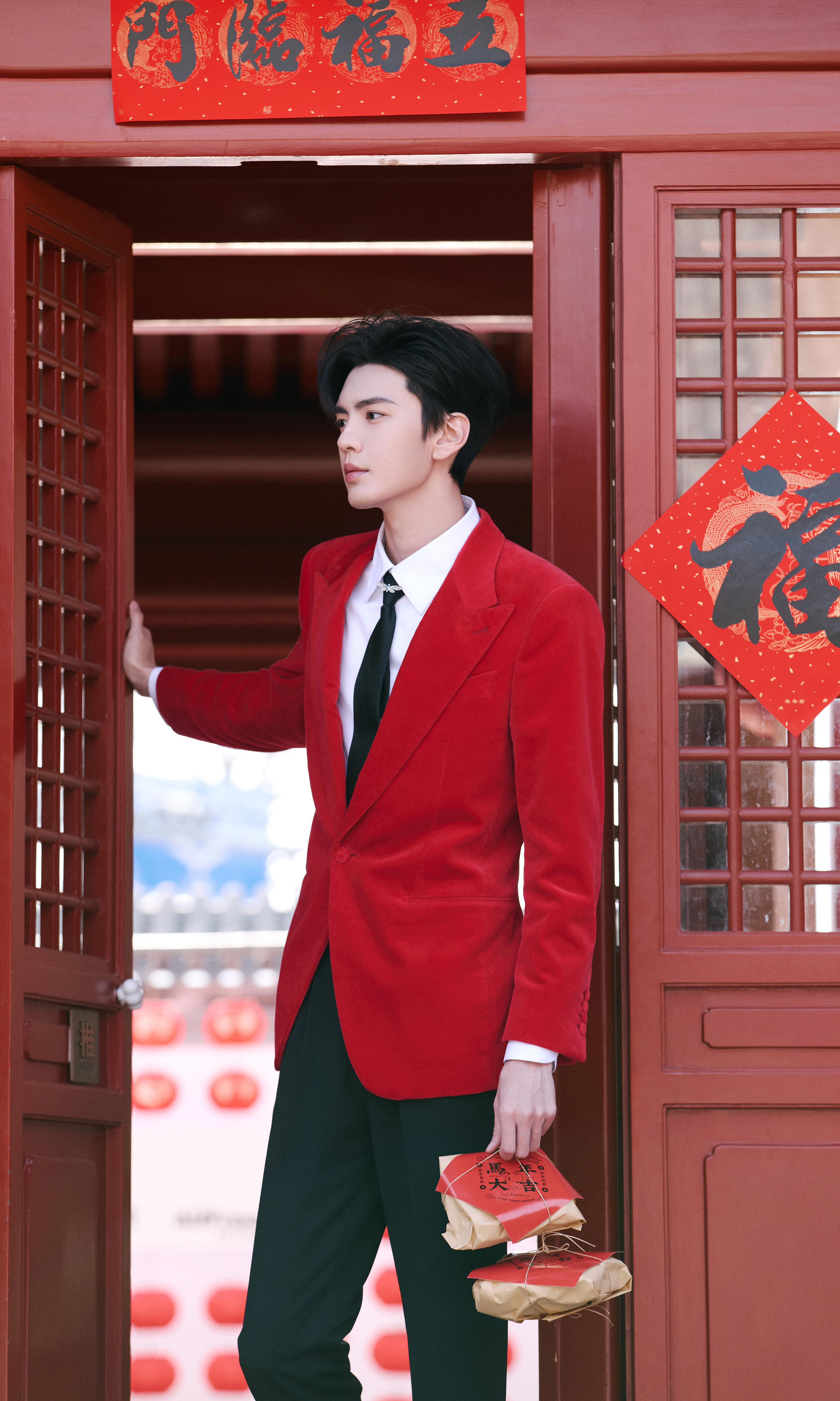 毕雯珺很周正的帅毕雯珺春晚《串门指南》造型封神!红丝绒西装挺拔贵气,手持瑞兽花灯立于红门福字旁,少年意气拉满,氛围感直接拉满!