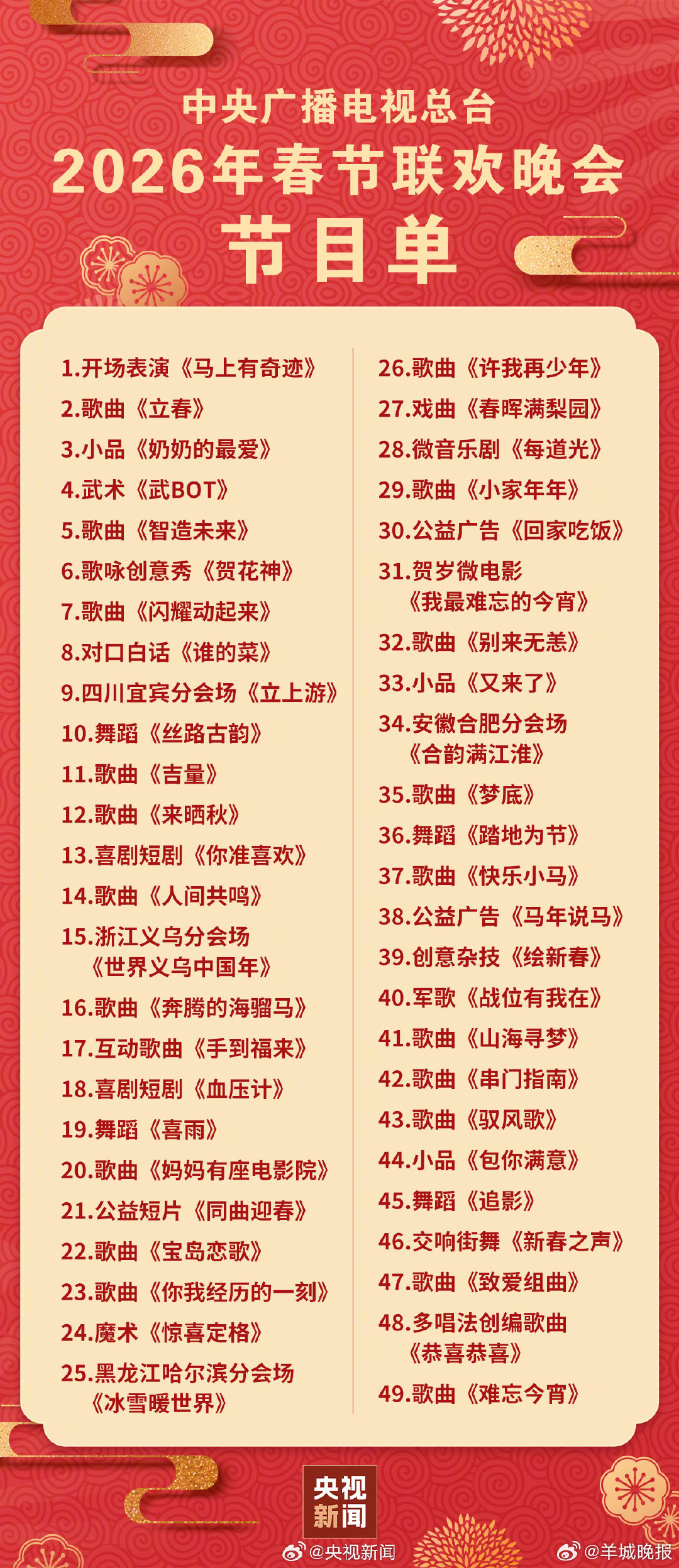 【央视春晚节目单速查版来啦】一眼定位你最想看的节目,压根不会跑空跟家里人一起共赏春晚盛宴,欢欢喜喜过大年你最期待谁的节目,评论区↓↓↓