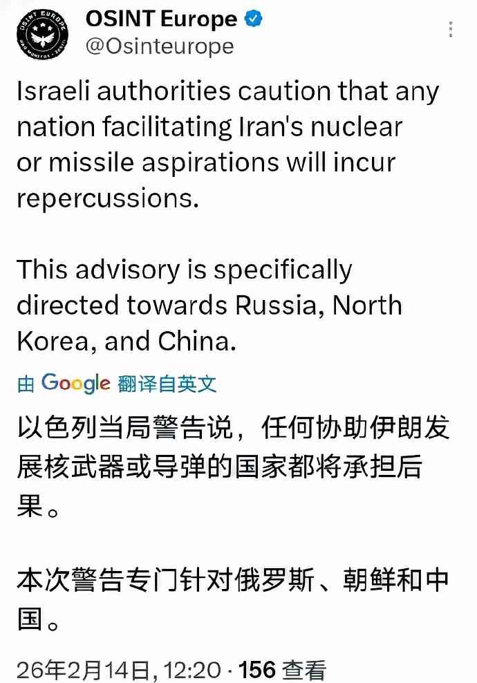 以色列突然点名警告中国,说要是咱们帮伊朗搞核武器或者导弹,就会有“灾难性后果”。这话说得挺重,而且把中国和俄罗斯、朝鲜放在一起点名,这在以前还真不多见。 要知道,以色列跟咱们外交上向来还算客气,这回突然变了调子,背后肯定有原因。说白了,以色列是真急了。 去年那场冲突,伊朗冲着以色列发射了不少导弹,连高超音速武器都用上了,以色列的防空系统压力挺大。虽然后来停了火,但以色列吃了亏,心里一直犯嘀咕,就怕伊朗的导弹技术再往上提一个台阶。更让他们紧张的是,伊朗战后开始到处找外援,一边跟俄罗斯谈买S-400防空系统,一边还跟中国在导弹制导、卫星这些军民两用的领域接触。虽说中国一直强调遵守国际规则、不向交战国卖武器,但以色列就是放不下心,可以说有点警惕过头了。 还有个背景是,最近美国和伊朗又在谈核协议,但谈得不顺。美国想把导弹问题也捆进去一块谈,伊朗死活不干,说导弹是自卫的,没得商量。以色列觉得美国可能靠不住,总理赶紧跑去找特朗普商量对策,甚至放话说不排除自己动手的可能。这时候点名警告中国,其实就是想划条红线,告诉所有人:谁帮伊朗提升军力,就是跟以色列过不去。 说实话,以色列这么干也有自己的算盘。一方面是想吓唬住潜在的技术援助,另一方面也是做给美国看,让美国知道以色列面临的压力有多大,好让美国在谈判中更硬气。再往深了说,美国这几年在中东有点收手的意思,以色列也担心哪天美国真不管了,自己得先亮明底线。 但问题是,这种单方面的警告能解决问题吗?中国在伊朗核问题上的立场一直很明确,就是主张通过对话谈判和平解决,反对动不动就制裁或者动武。中国跟伊朗的正常合作,都是遵守国际法的,不会去帮伊朗搞核武器。以色列这么一闹,反倒可能让地区更紧张。 说实话,你打我、我打你,今天炸了核设施,明天伊朗又悄悄重建,这种循环对谁都没好处。中东要是乱起来,全球的能源和安全都会受影响。中国一直劝和促谈,跟以色列和伊朗都保持着沟通,就是希望各方能冷静下来。 说到底,靠威胁和施压解决不了问题,坐下来好好谈才是正道。希望以色列能想明白这一点,别把局面搞得更僵。
