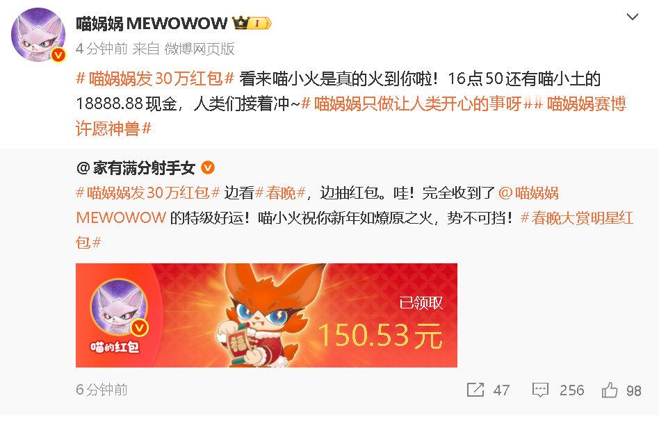 喵娲娲红包额度谢谢喵小水 看到别人晒红包截图馋哭了?别急,后面还有N只喵喵没登场!18888.88、28888.88、48888.88等现金红包+线下福利多到爆炸,速来主页蹲着,下一个晒好运的就是你!🧧📸