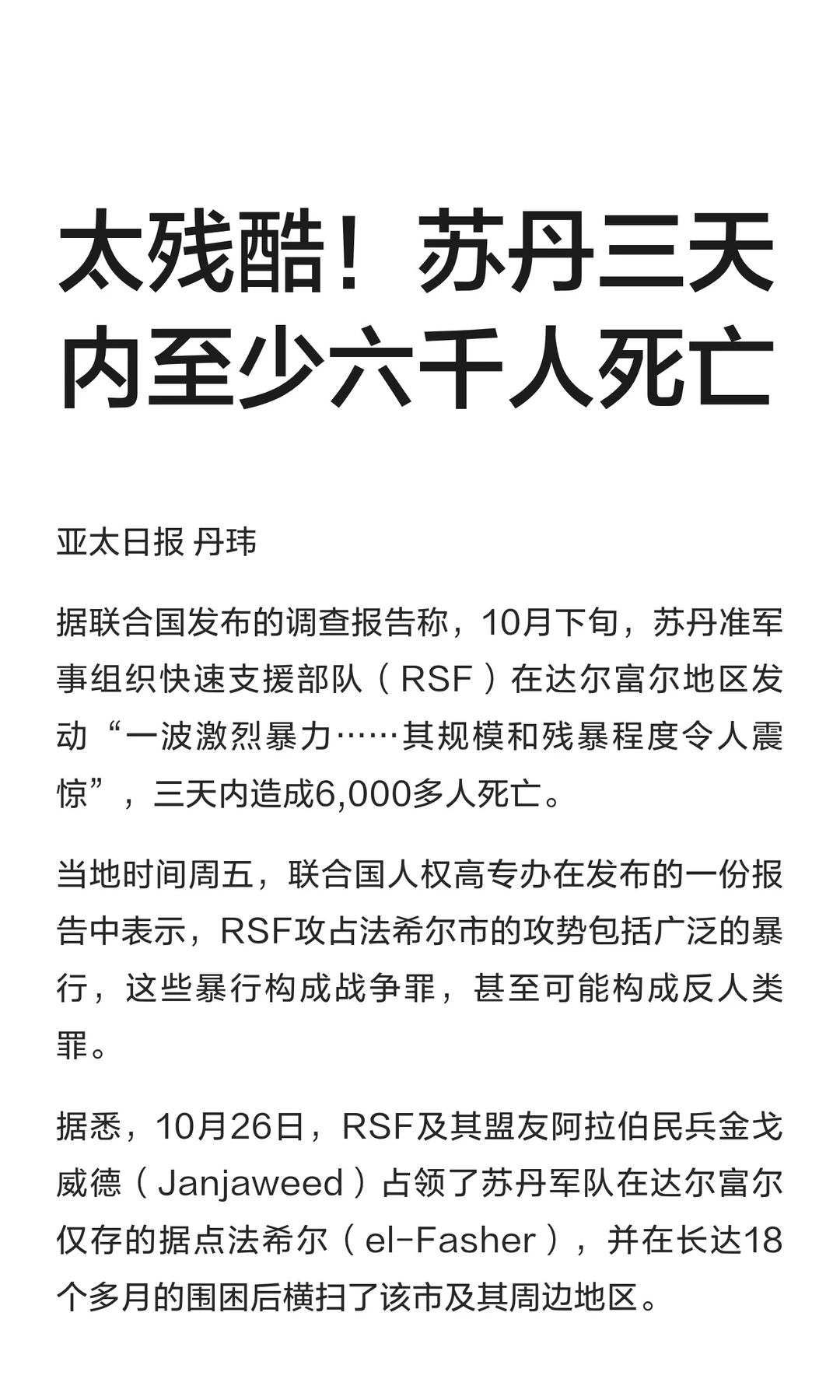 太残酷!苏丹三天内至少六千人死亡