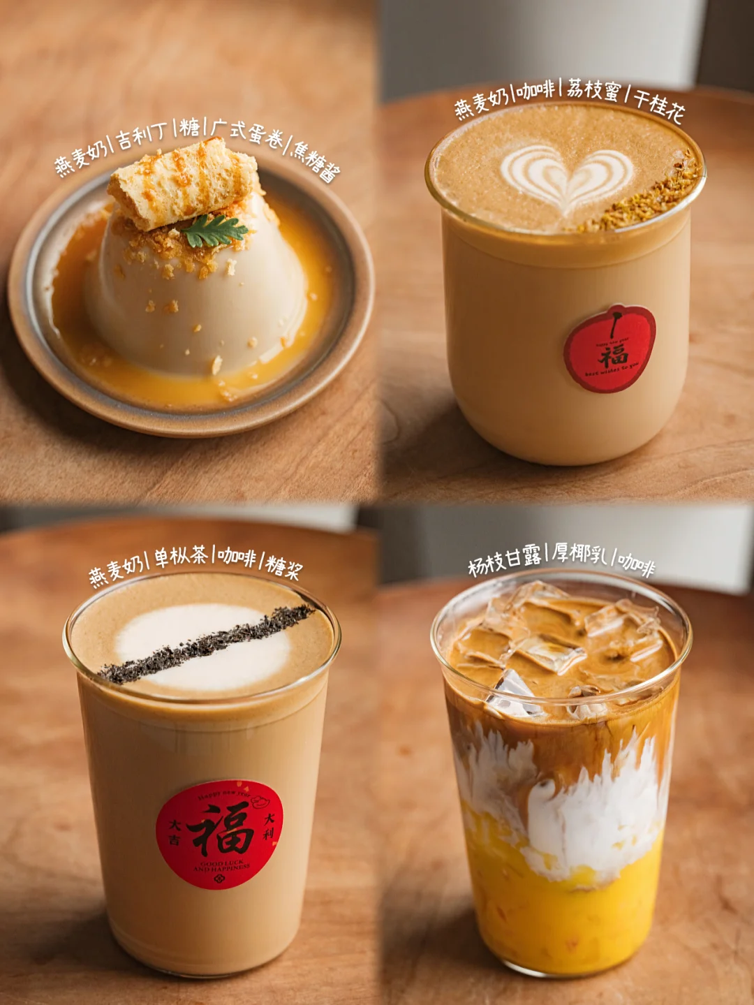 初一喝 🥛红运Dirty|🍓草莓云顶卡布 ☕️新年烟花拿铁|🍮草莓牛奶冻 初二喝 🧧福气曲奇卡布|🧊雪顶红运冷萃 🍡糖福禄冰拿铁|🥧奶油树莓蛋挞 初三喝 🌱单枞燕麦卡布|🥭杨枝甘露拿铁 ☕️荔枝蜜燕麦拿铁|🍮蛋卷燕麦奶冻 初四喝 🍓草莓糖福禄拿铁|🍎苹果冷萃 ☁️红云顶棉花卡布|🧧大福拿铁 -