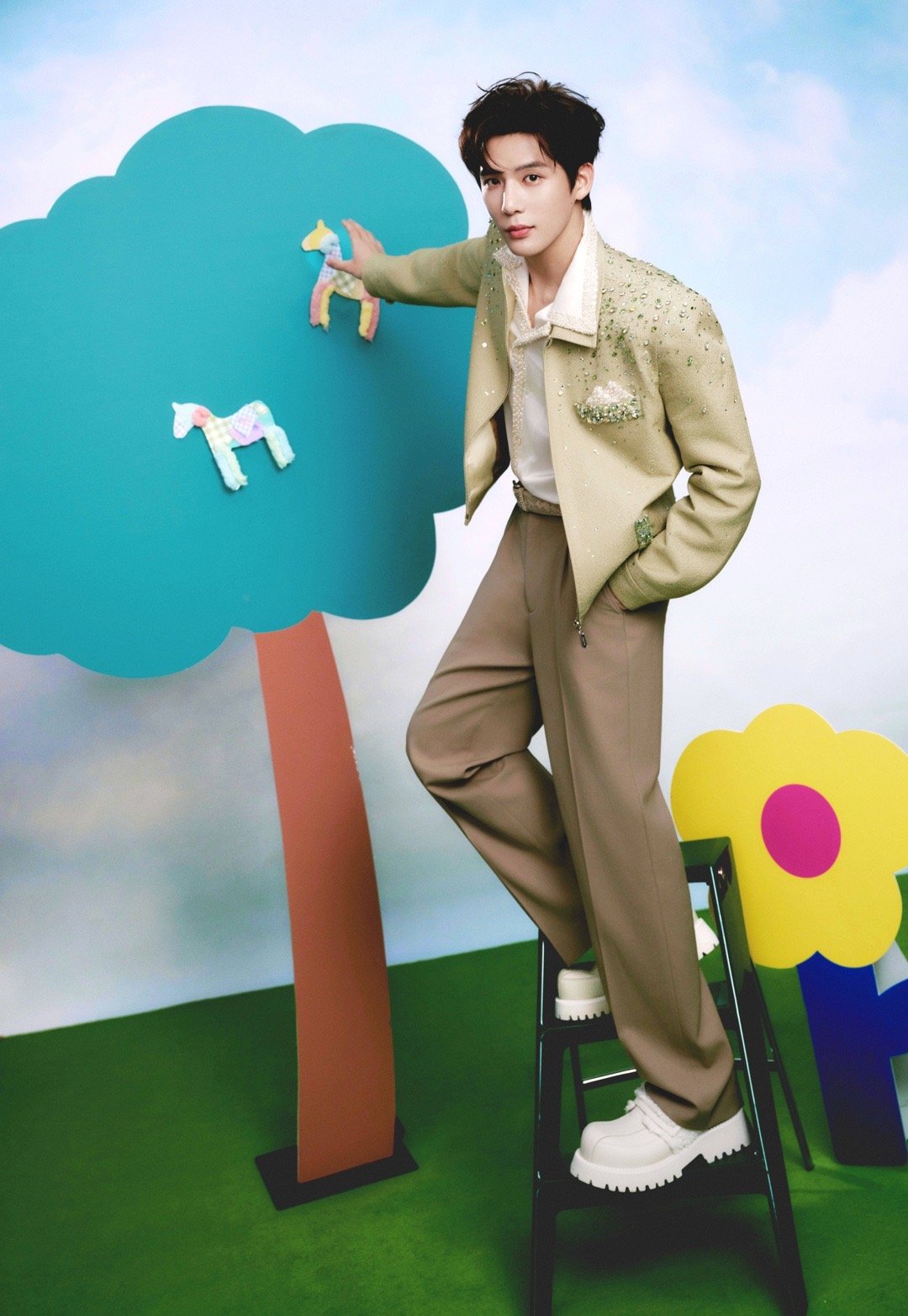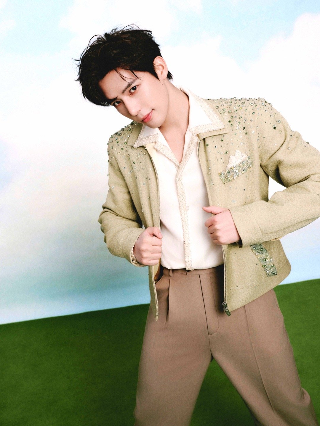 王安宇 × 马年新春大片,绿色钻饰西装以宁波非遗彩绣点缀而熠熠生辉,简约高级,眉眼清俊,温润轮廓与高级礼服的巧思纹样相得益彰,出众的骨相与气质完美演绎,“人衣合一”、贵气天成,与王安宇共赴新春团圆夜☘️