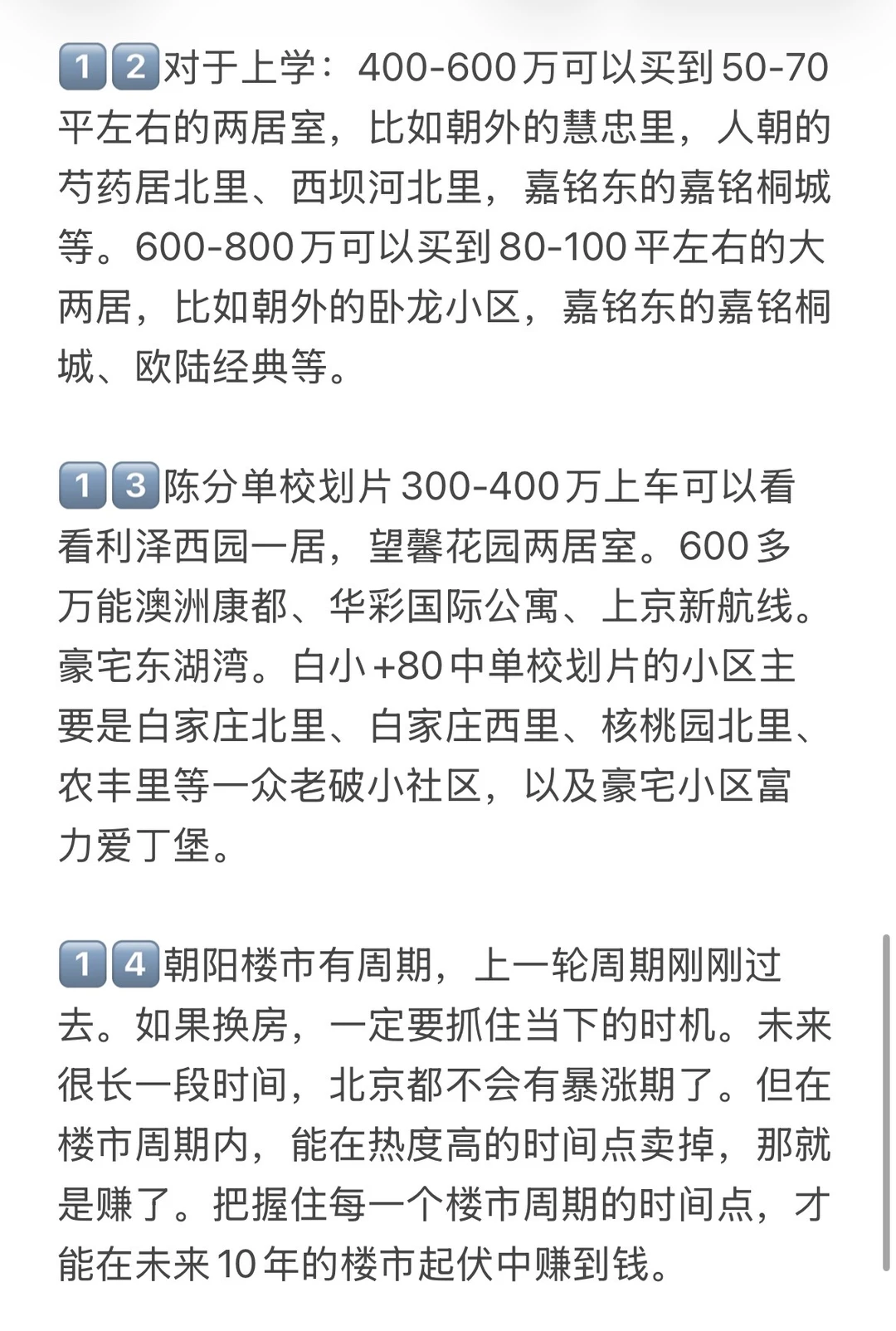 3️⃣刚需另一个思路是核心地段老小区,东三环,东四环,北三环北四环,都可以。相对热门的版块有:西坝河、团结湖、石佛营、四惠等等,就是房子老,跟大盘能力一般。基本纯自住为主。