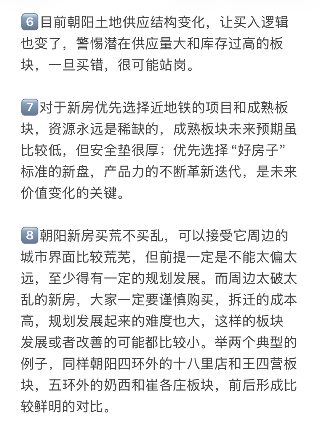 6️⃣目前朝阳土地供应结构变化,让买入逻辑也变了,警惕潜在供应量大和库存过高的板块,一旦买错,很可能站岗。