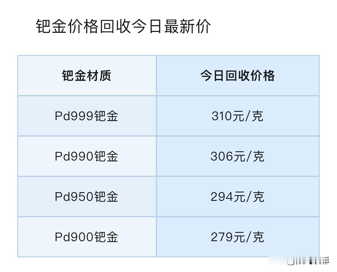 今日除夕铂金、钯金报价!(2026年2月16日)铂金、钯金回收报价!以及铂金、钯金行情分析报告! 那么先来了解一下今日铂金回收价格为多少钱一克了? PT999铂金回收价格425元/克,PT990铂金回收价格420元/克,PT950铂金回收价格403元/克,PT900铂金回收价格382元/克。 同昨天(2月15日)铂金回收报价相比较,今天铂金回收价格同昨天保持一致。 再来,了解一下钯金回收价格为多少钱一克了? Pd999钯金回收价格310元/克,Pd990钯金回收价格306元/克,Pd950钯金回收价格294元/克,Pd900钯金回收价格279元/克。 同昨天(2月15日)钯金回收报价相比较,今天钯金回收价格也同昨天保持一致。 贵金属今日价格走势分析:2026年2月16日,本周国际金价收盘于5000美元/盎司上方,累计涨幅约1.6%,整体交投区间在4877-5120美元/盎司。国际银价收盘于77美元/盎司上方,累计跌幅约0.5%,整体交投区间在73-86.2美元/盎司。 对于下周金价走势最新预测:33%分析师看涨下周金价(国际金价仍将位于5000美元上方),25%分析师看跌下周金价,42%分析师认为下周金价横盘整理。 截至12时52分,现货黄金上涨2.39%至每盎司5038.5美元,现货白银上涨2.55%至每盎司77.11美元,现货铂金上涨3.11%至每盎司2062美元,现货钯金上涨4.39%至每盎司1686.3美元。 黄金实时价格1119元,白银实时价格19.2元,铂金实时价格467元,钯金实时价格382元。 注意:铂金回收有这以下4个知识点,特别的重要,谨防上当吃亏。 第一,铂金回收是不需要发票和以前的购买凭证的。如果有人跟你说因为没有发票要扣你手续费,那他一定是在坑你。 第二,铂金回收是没有折旧费一说的,不管你是戴了几十年还是刚刚买的,回收的时候只看重量和纯度,只要纯度是3个9以上的,回收价格都是一样的。 第三,卖之前一定要知道自己首饰的精准克重,以防被其他人偷秤。 第四,铂金回收就是按照当天的国际金价减个几块钱一克回收,所以要提前查一下当天的国际金价。 只要注意这4点,根本没有人能够坑得到你。 最后说声,所有信息,都只是提供参考价值! 投资有风险,理财需谨慎! 铂金回收行情 铂金价格 铂金回收价 铂金价格波动 白银铂金回收 铂金行情分析 铂金钯金价格