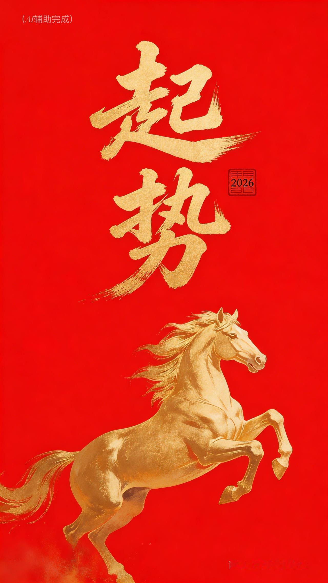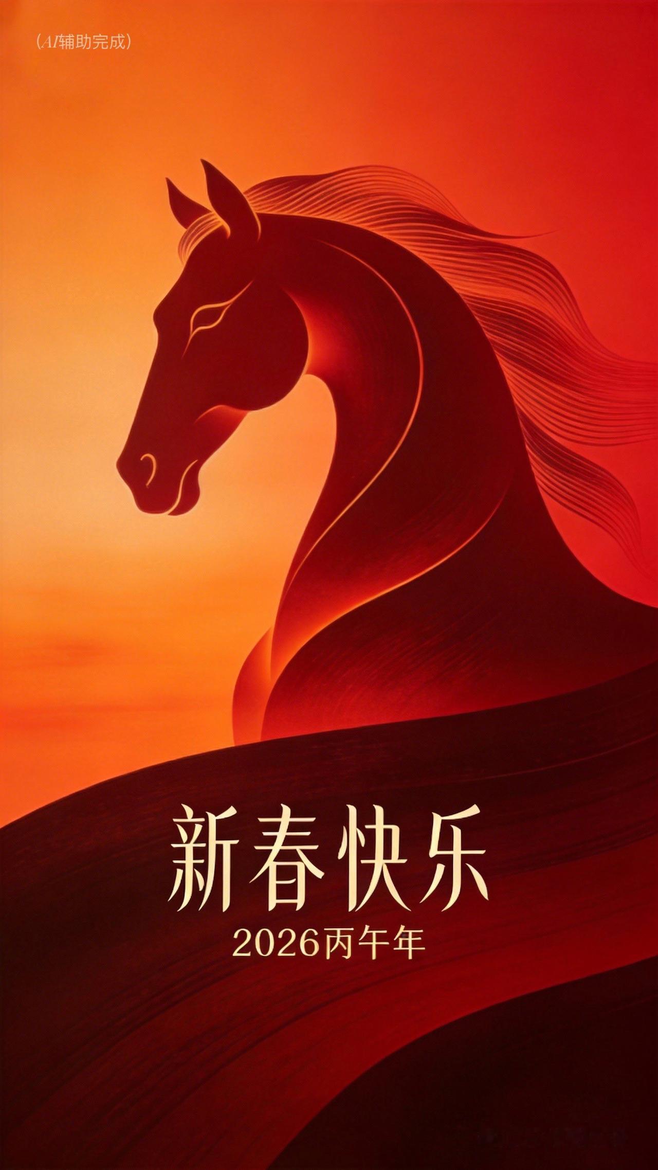 金鬃骏马踏春来,昂首嘶鸣鬃飞扬,前蹄跃起势如虹。深红橙霞衬灵韵,丙午马年祥瑞至。辞旧迎新福满溢,这帧吉象如诗画,一眼沦陷!