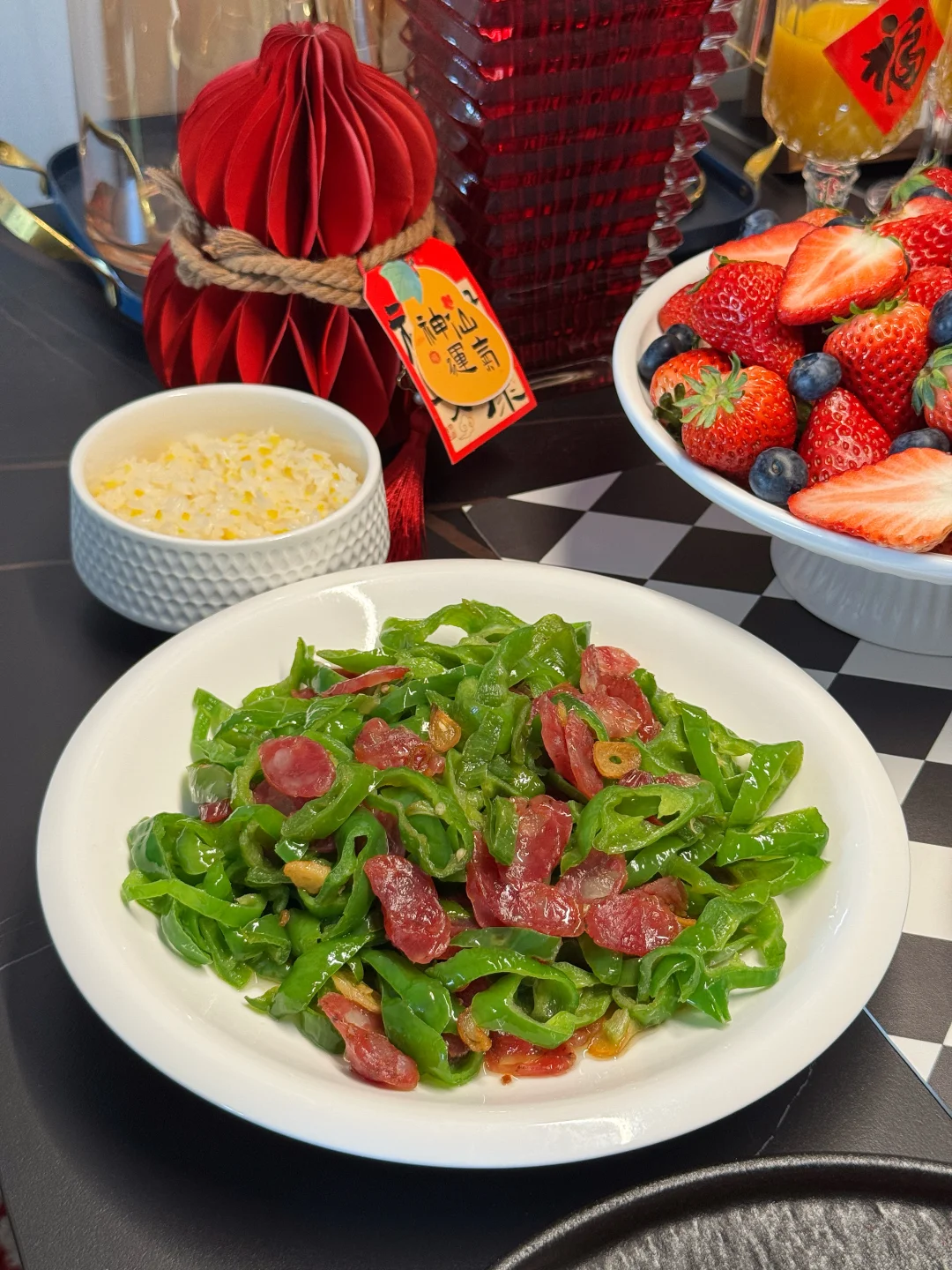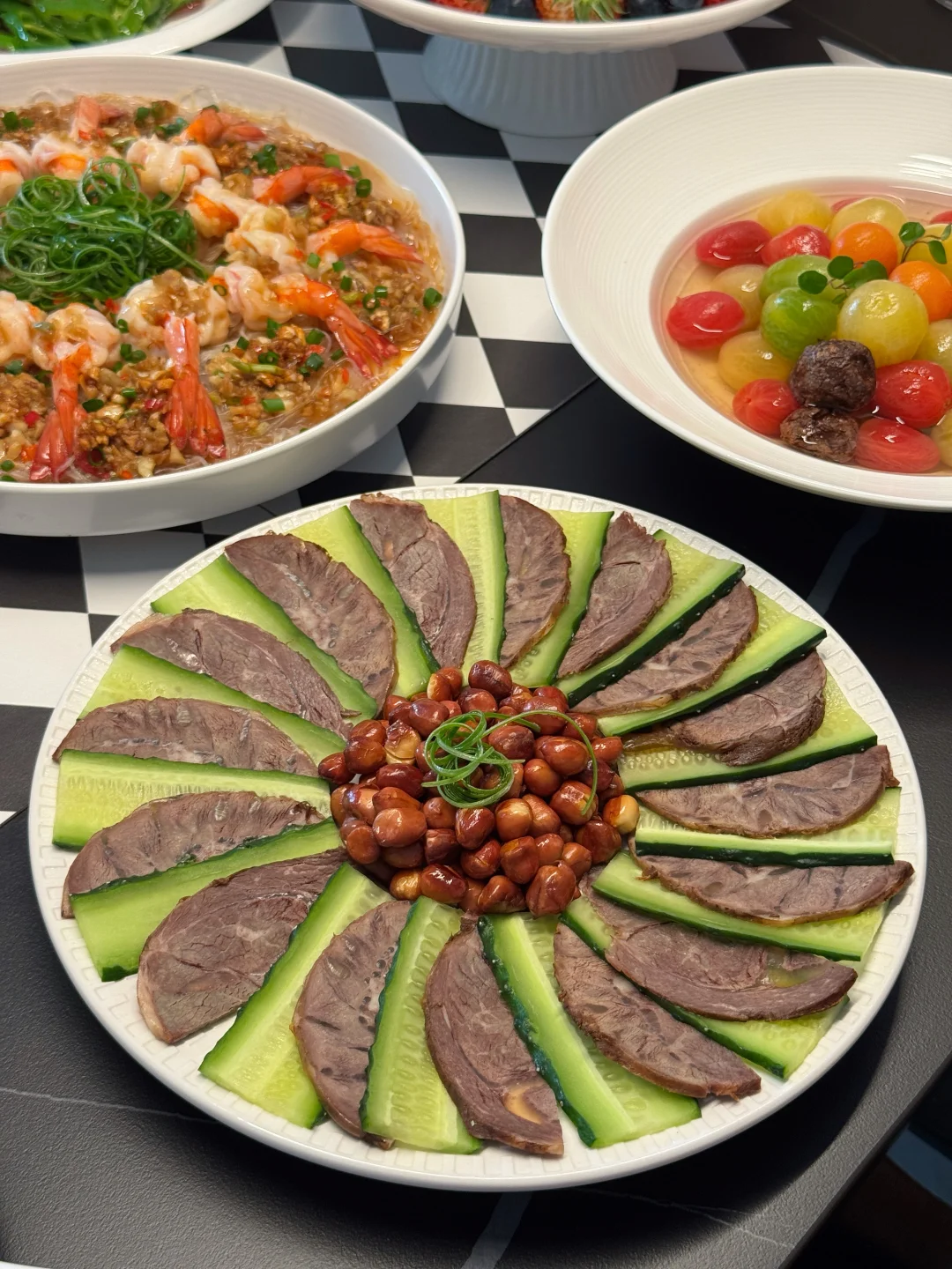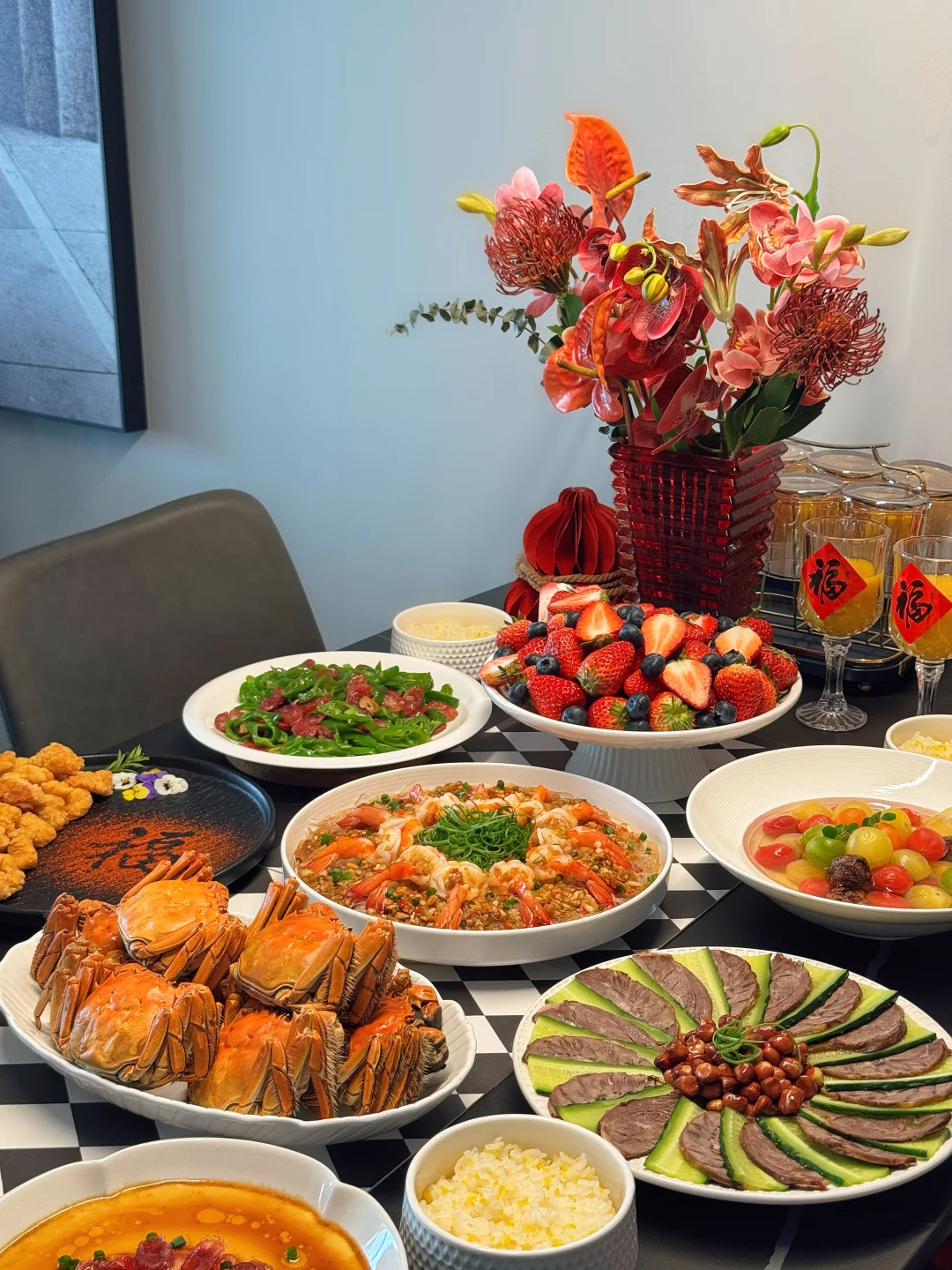 忙活了一上午,终于把这桌“爱”端上了桌。 作为家里的掌勺人,最幸福的时刻不是摆盘有多精致,而是看着大家把我做的菜吃光光,一边吃一边唠家常。厨房有烟火,客厅有欢笑,这就是我眼中最完美的新年~ 买的特级薄盐腊肠也到啦,今天安排了2道腊肠哦! 🥢今日菜单: [福R]蒜蓉粉丝虾 [福R]清蒸大闸蟹 [福R]卤牛肉 [福R]腊肠蒸鸡蛋羹 [福R]盐酥鸡 [福R]尖椒炒腊肠 [福R]梅渍小番茄 [福R]辣子鸡丁