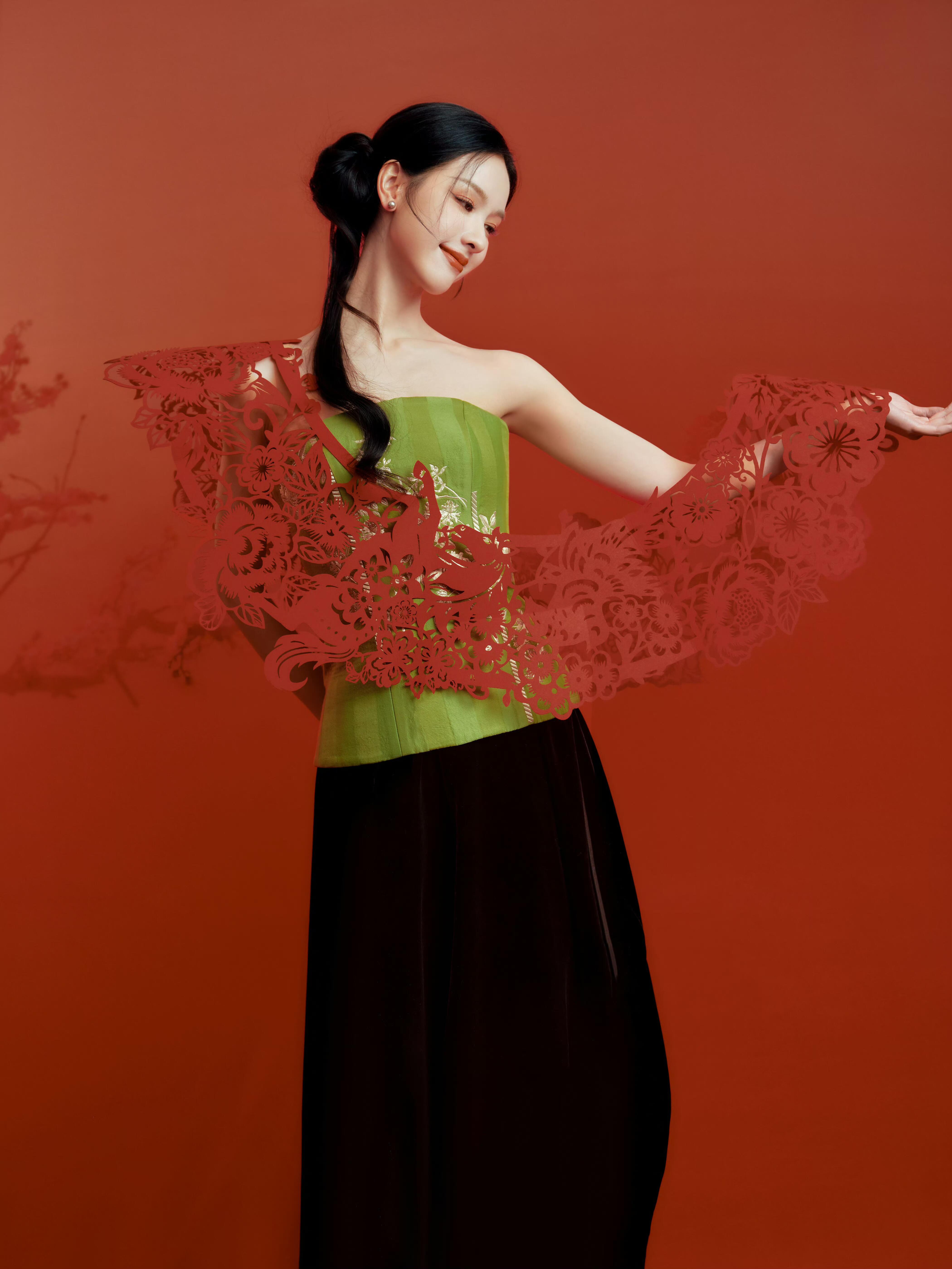 春晚新春茶话会好好过大年青衿绣纹承东方雅韵,梅枝映靥绽温婉风华。陈都灵着LA MAISON JADE 2026早春系列,将新岁春意与中式美学揉碎在眉眼间。
