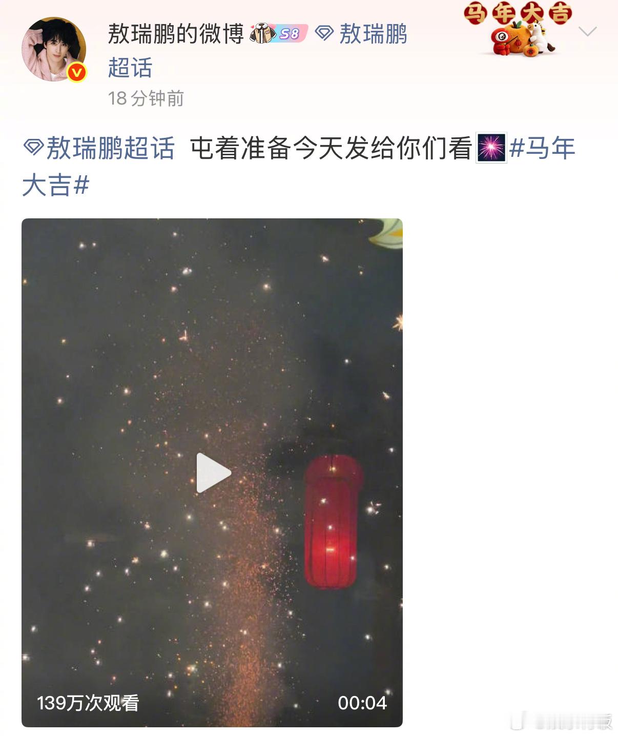 敖瑞鹏除夕固定节目发红包晒烟花敖瑞鹏除夕固定节目认证为宠粉狂魔每年除夕都要发红