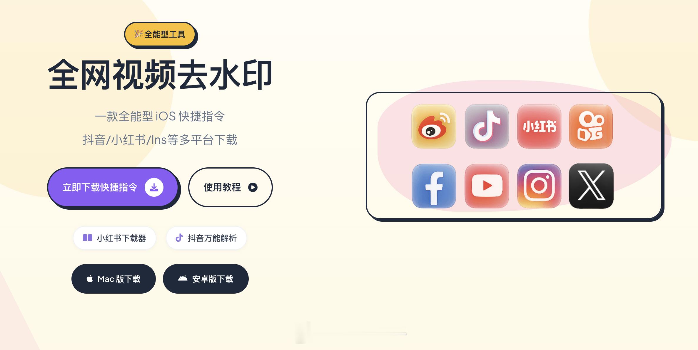 好消息!为了方便大家春节期间下载视频图片。全网视频去水印/小红书下载器/抖音万能解析等下载解析类工具(包含快捷指令 安卓版和 Mac 版),每天免费下载从之前的 10 次提高到 50 次,本月底前都有效,有需要的自取: 网页链接