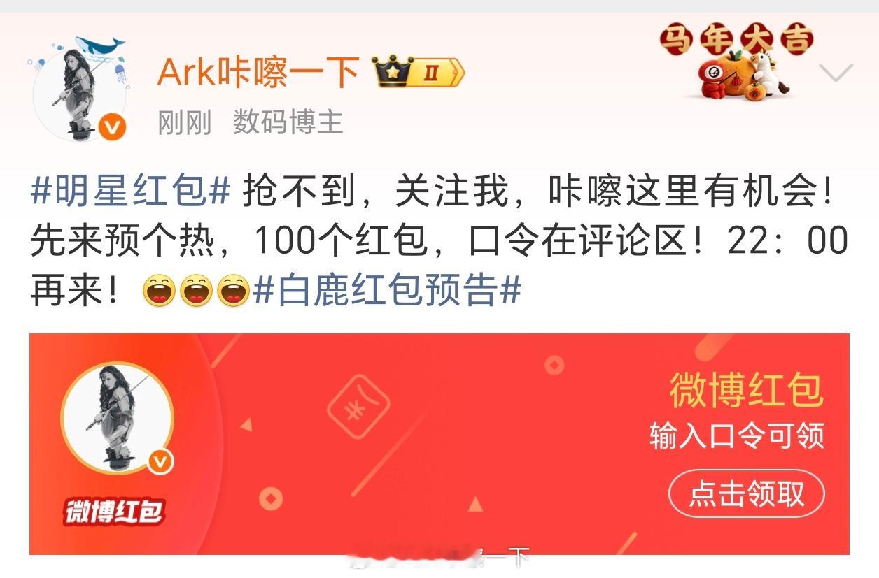 今晚22:00,为大家还准备了关注口令红包,大家积极参与互动呀,接下来春节假期期间还给大家准备了红包白鹿红包预告明星红包