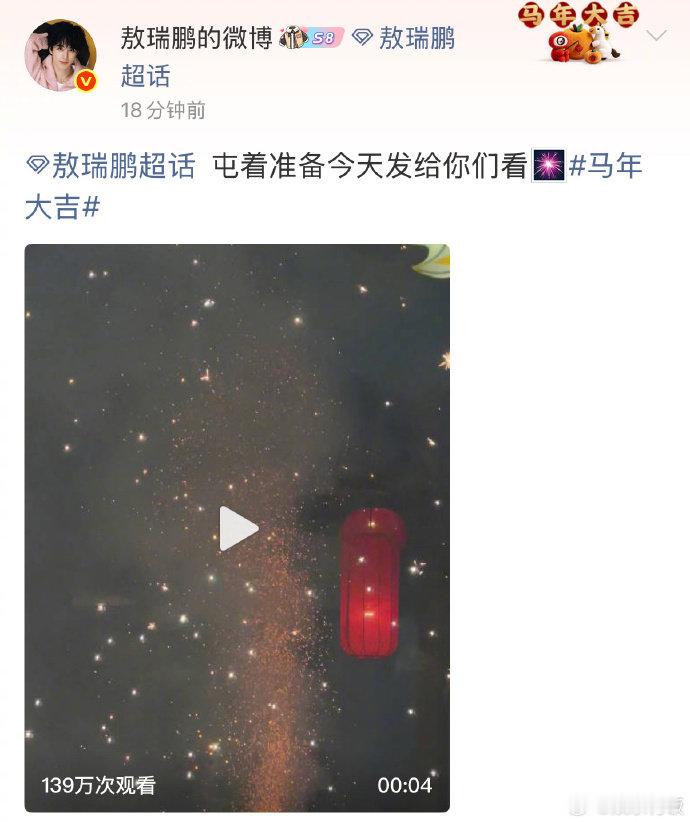 敖瑞鹏除夕固定节目发红包晒烟花敖瑞鹏除夕固定节目上线,发红包晒烟花仪式感满满,