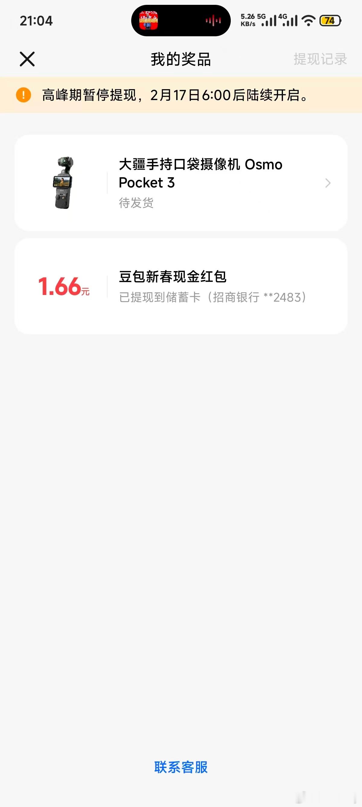 除了抽1.66和1.88现金,都中奖了吗?大疆Pocket3已经到手豆包抽奖春晚