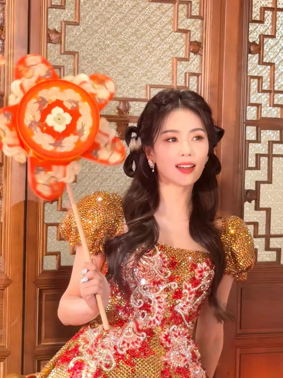 春晚新春茶话会好好过大年白鹿浅笑嫣然,编发温婉,春晚喜气拉满了