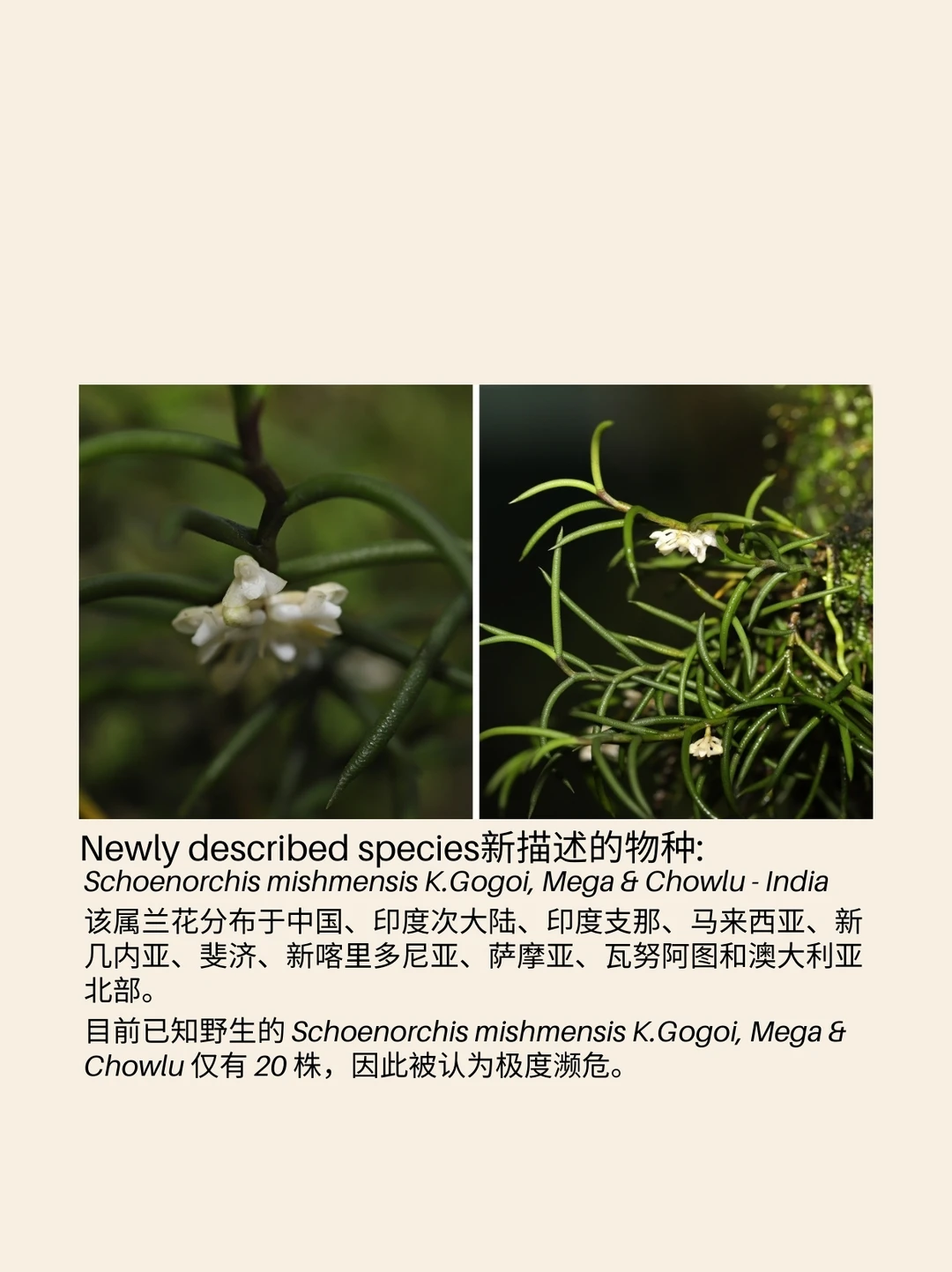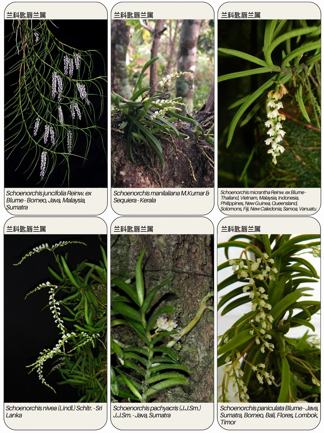 匙唇兰属 Schoenorchis ,俗称跳蚤兰,是兰科 Orchidaceae 下的一个开花植物属。该属植物为小型附生植物,根细,茎细长,叶片两列排列,花朵细小芳香,近管状,唇瓣具明显的距。该属约有25个物种,分布于热带和亚热带亚洲至西太平洋地区。