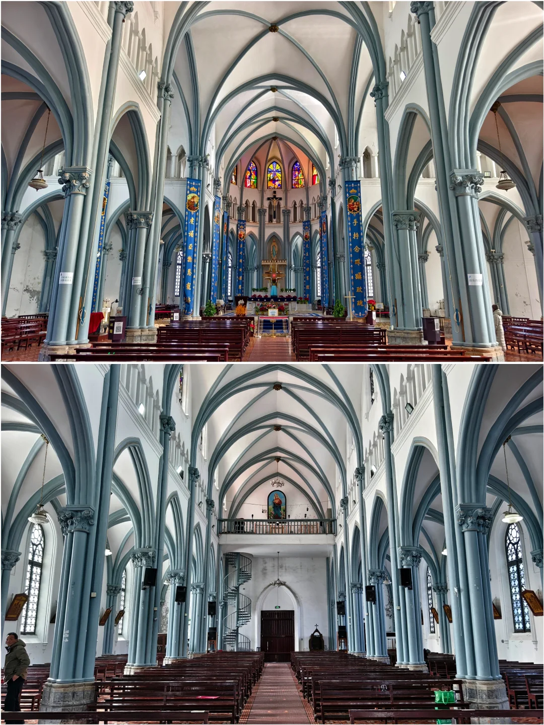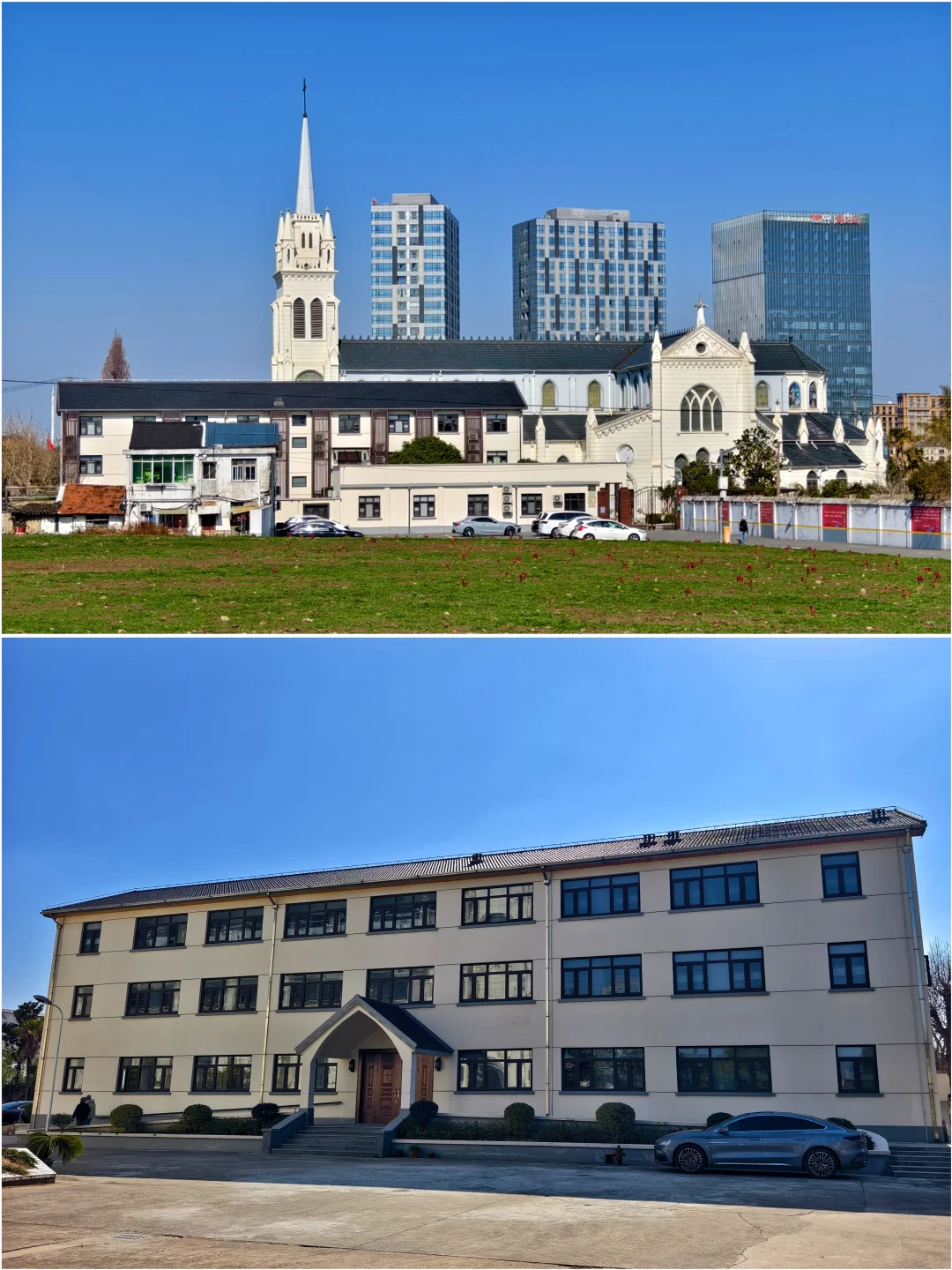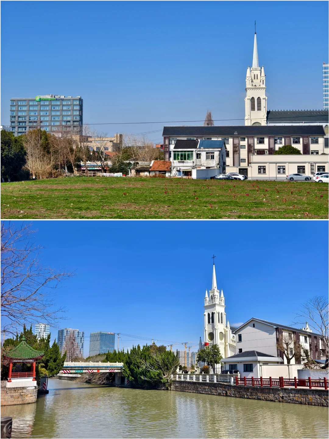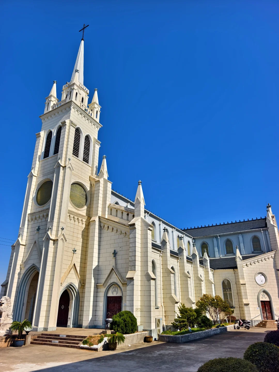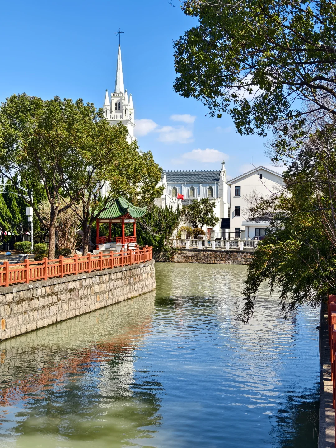 🔥天主教上海教区唐墓桥露德圣母堂,位于浦东新区唐镇老街40号,教堂于1895年动工,1898年初竣工。有段时间,教堂先后被用作农机厂和铸钢厂厂房,1992年修复并重新开放。 🔥仿照法国露德圣母大殿式样建造,宏伟的哥特式风格:教堂整体呈拉丁十字形,最引人注目的是它高达47.4米的钟楼,是晚清浦东最高建筑之一。你可以沿着螺旋扶梯登上钟楼,东望大海,西眺市区。 🔥小时候就读的唐镇小学,就在边上。