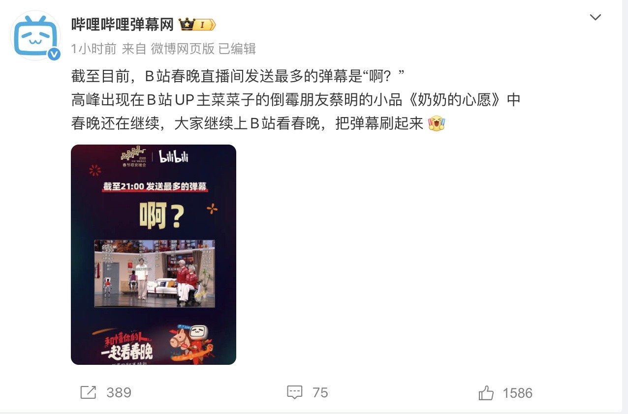 春晚直播间发送最多的弹幕出炉!答案居然是清一色的“啊?”😂截至21点全网刷屏,高峰直指蔡明老师的《奶奶的心愿》。这波反转太猝不及防,网友的真实反应全在弹幕里了!