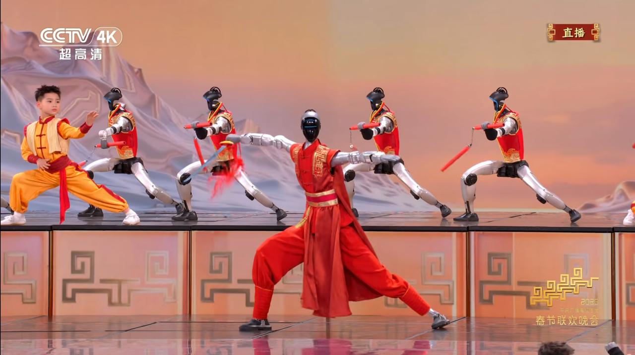 四家机器人厂商春晚同台pk春晚这个机器人太厉害了,居然还会武术,双截棍也耍的挺溜