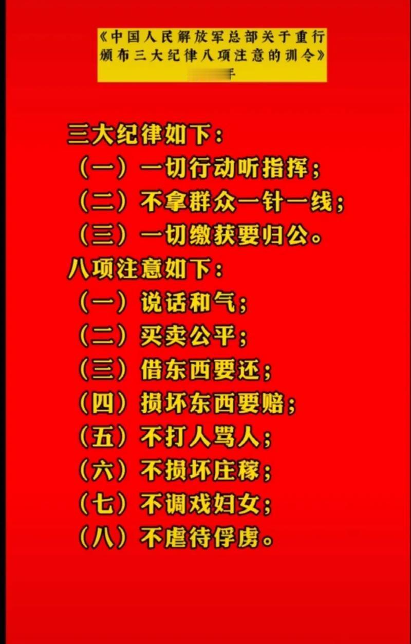 让《三大纪律八项注意》在军队再次响起 坚决铲除腐败滋生土壤 三大纪律八项注意是人民军队的建军基石与胜利密码。在全面从严治军向纵深推进的关键阶段,重提这一红色铁律,对坚守军队性质宗旨、纯正政治生态、确保能打胜仗具有重大现实意义。本文立足历史传承与时代要求,论述以三大纪律八项注意推进军队反腐肃纪的路径与举措。 一、三大纪律八项注意:人民军队永不褪色的铁律根基 三大纪律八项注意是人民军队的经典纪律规范,形成于革命战争年代,由毛泽东同志逐步总结、完善并统一颁布。它最早源于红军初创时期的群众纪律要求,后经过多次修订、充实,最终形成系统简明、便于执行的行为准则。内容涵盖政治纪律、群众纪律、廉洁纪律与作风要求,语言朴素、指向明确,是人民军队“听党指挥、服务人民、纪律严明”的集中体现,也是我军克敌制胜、赢得民心的重要法宝,长期以来成为人民军队的光荣传统和作风标志。 这一纪律准则贯穿各个历史时期,塑造了人民军队忠诚、守纪、爱民的底色。其中,“一切行动听指挥”筑牢党对军队绝对领导的政治根基;“不拿群众一针一线”从源头划定公私边界;“一切缴获要归公”严明了财经纪律。历史证明,严守此纪律,军队则风清气正;背离此铁律,则会滋生歪风、脱离人民。 进入新时代,军队权力运行环节增多,腐败问题仍有潜滋暗长的空间。军队是拿枪杆子的,腐败绝无存身之地。重温三大纪律八项注意,是用红色纪律标尺校正行为、防治腐败,确保人民军队不变质、不变色、不变味的必然要求。 二、以三大纪律八项注意为镜鉴,坚决向军队贪腐亮剑 (一)坚守政治纪律,筑牢听党指挥的反腐防线 “一切行动听指挥”是最高政治纪律。军队反腐,首在严守政治规矩,确保绝对忠诚可靠。现实中,少数人把公权当私器,搞利益输送,本质上是无视纪律、背离初心。必须将此纪律融入日常监督,从政治根源上铲除腐败滋生的思想土壤。 (二)严守廉洁底线,从源头杜绝贪腐行为 “不拿群众一针一线”、“一切缴获要归公”直指廉洁底线。新时代军队建设涉及经费使用、工程建设、装备采购等关键领域,腐败风险较高。重温这两条纪律,就是强化公款姓公,一分一厘不能乱花;严明财经纪律,杜绝虚报冒领、中饱私囊,确保军费用于战斗力建设。 (三)恪守作风准则,涤荡“四风”与微腐败 八项注意聚焦言行举止与军民关系,直指官兵身边的不正之风。当前,吃拿卡要、侵占士兵利益等问题仍损害军队形象。以八项注意为日常行为规范,推动官兵从小事小节严起,让优良作风回归军营,充盈清风正气。 (四)厚植人民情怀,巩固拒腐防变的群众根基 三大纪律八项注意的核心是人民至上。军队背离人民立场,就容易脱离监督、滋生腐败。践行纪律准则,必须坚持官兵一致、军民一致,把权力置于阳光之下,让官兵和群众参与监督,形成不敢腐、不能腐、不想腐的内部生态。 三、让三大纪律八项注意常态化,锻造永不腐败的钢铁之师 (一)常态化唱响传唱,铸牢思想根基 将三大纪律八项注意纳入全军思想政治教育和新兵入营培训,作为军营必唱歌曲、必学内容。通过仪式教育与典型引领,让纪律内化为信仰信念,外化为行为自觉,时刻提醒官兵:人民军队绝不容许腐败病毒感染。 (二)对标对表严执纪,强化刚性约束 以此纪律为标尺,检视权力运行与经费管理。坚持无禁区、全覆盖、零容忍,对顶风违纪、贪腐谋私的行为,发现一起、查处一起。紧盯关键少数与重点领域,让纪律真正成为带电的高压线。 (三)融入制度建设,扎紧制度笼子 将三大纪律八项注意精神融入军队巡视审计、基层风气监督等全链条,与中央八项规定精神一体执行。完善权力清单与负面清单,推进决策公开、结果公开,实现用制度管权、靠制度管人,从机制上压缩腐败空间。 (四)领导带头作表率,形成头雁效应 坚持以上率下,领导干部带头学纪律、守纪律,带头廉洁自律、反对特权。一级做给一级看,以关键少数的清风正气带动全军风气持续向好,营造崇廉、守纪的浓厚氛围。 综上所述,三大纪律八项注意是人民军队的传家宝,是拒腐防变的护身符。腐败与人民军队水火不容。让这一红色铁律在新时代军营再次响亮响起,就是要回归初心、严明纪律,以铁的纪律正风肃纪、反腐惩恶,确保人民军队永远忠于党、忠于人民,永远成为召之即来、来之能战、战之必胜的钢铁之师。 全军官兵必须时刻铭记:纪律如铁、使命如山,让红色纪律代代相传,让腐败现象在军队无处遁形,为实现建军一百年奋斗目标提供坚强纪律保证。