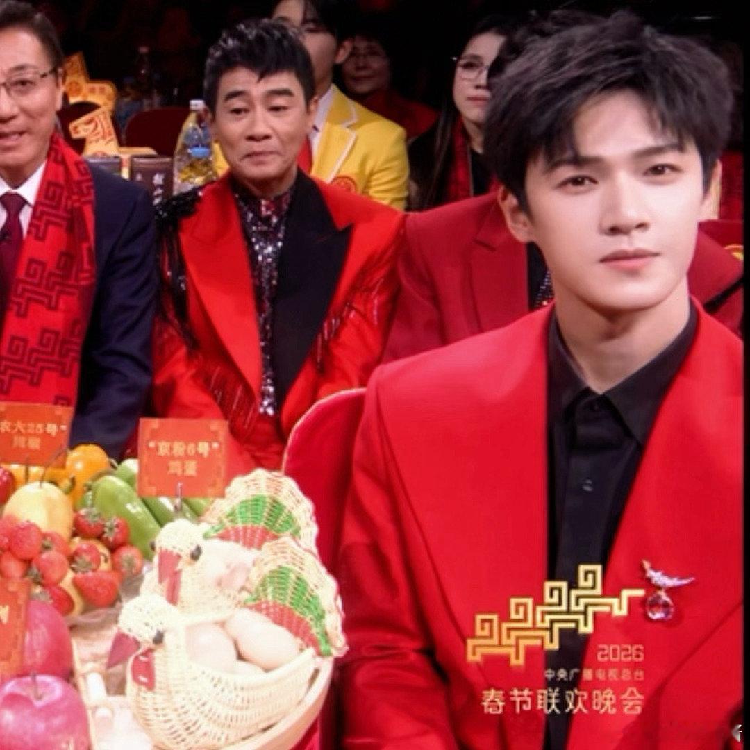 镜头一切李昀锐帅我一大跳春晚台下李昀锐一颦一笑都帅气氛围感直接拉满身着红色西装适配度满分帅气中透着沉稳大气