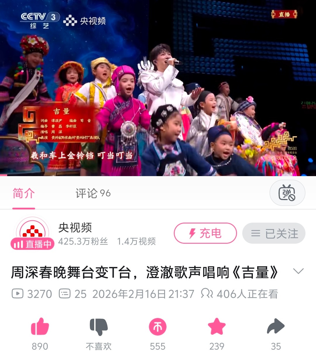 央视新闻等各官号在小破站都更新了深深今晚舞台完整版,米子们快来完整观看并多多三连多多安利