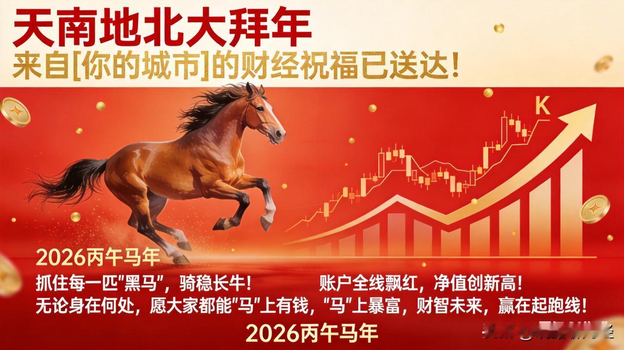商都郑州的财经祝福已如期送达! 2026年是丙午马年,注定是奔腾奋进的一年! 祝愿天南地北的投资者们: 精准捕捉每一匹“黑马”,稳稳骑住长牛! 账户全线飘红,净值再创新高! 无论身处何方,愿大家都能“马”上有钱,“马”上暴富,以财智开启未来,赢在起跑线!