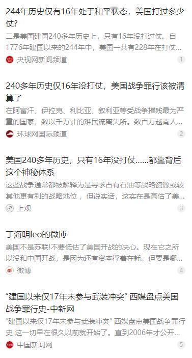 美国不是苏联,不要低估了美国开战的决心,现在它之所以没和中国开战,是因为还有资本撑着在耗。但要是哪天无路可走,为了保住自己的霸权,老美很有可能会最先打响“第三次世界大战”的擦边球 麻烦看官老爷们右上角点击一下“关注”,既方便您进行讨论和分享,又能给您带来不一样的参与感,感谢您的支持! 美国的国家底色与发展逻辑和苏联有着本质区别,绝不能用看待苏联的思维低估其动用武力的决心。当前美国未与中国直接开战,并非放弃对抗,而是仍有经济、科技、军事资本可用于长期消耗,一旦自身优势耗尽、霸权根基动摇,为维护全球主导地位,其极有可能率先挑起局部冲突,触碰世界大战的危险边缘。 美国自 1776 年独立后的两百四十余年里,仅有 16 年完全没有卷入战争,其余时间始终在作战或备战。美墨战争、美西战争为其完成领土与海外扩张,两次世界大战让其避开本土战火、收割战略红利,完成从区域强国到全球霸主的跨越。 多位欧美历史学者与研究机构均指出,战争与对外扩张是美国崛起的核心路径,霸权并非来自和平选择,而是由持续的军事行动与冲突博弈逐步搭建而成,这一特质贯穿其建国至今的发展历程。 2003 年,美国绕过联合国安理会,以子虚乌有的大规模杀伤性武器为借口,联合英国发动伊拉克战争。联合国多个核查小组历经长期排查,未发现任何相关武器存在的证据,这场战争的核心借口被彻底证伪。 战争导致伊拉克国内秩序长期崩溃,平民伤亡数量巨大,大量民众流离失所,地区安全格局持续恶化。美国此举的真实目的,是清除中东反美力量、控制能源核心区域,巩固在中东的霸权布局,完全违背联合国宪章与基本国际关系准则。 截至目前,美国在全球约 80 个国家和地区部署约 750 个海外军事基地,形成覆盖各大洲的前沿军事存在。同时搭建北约、美日、美菲等多层级军事同盟,绑定盟友服务自身战略。 除军事部署外,美国还频繁动用科技出口管制、单边经济制裁、贸易壁垒等非战争手段,在南海、台海等区域不断制造摩擦,以全方位围堵方式遏制中国正常发展,试图延缓自身霸权的衰退进程。 中国的和平发展与综合国力提升,正在逐步改变全球力量对比,动摇美国依靠单边规则建立的霸权体系。当美国的科技垄断、经济主导、同盟凝聚力等核心优势持续消退时。 其很可能在台海、南海等敏感方向挑起代理人冲突或直接局部军事摩擦,打响世界大战的擦边球,而这类低烈度冲突一旦失控,极易升级为更大范围的对抗,给全球和平与稳定带来致命威胁。 面对美国从未改变的霸权思维与潜在军事风险,必须彻底放弃不切实际的妥协幻想,始终保持清醒的战略定力。坚持以发展为第一要务,持续提升经济、科技、国防等综合国力。 同时筑牢国防安全屏障,坚定捍卫国家主权与领土完整,依靠自身强大实力抵御外部霸权挑衅,既维护本国发展利益,也以稳定可靠的战略力量守护地区与世界的和平环境。