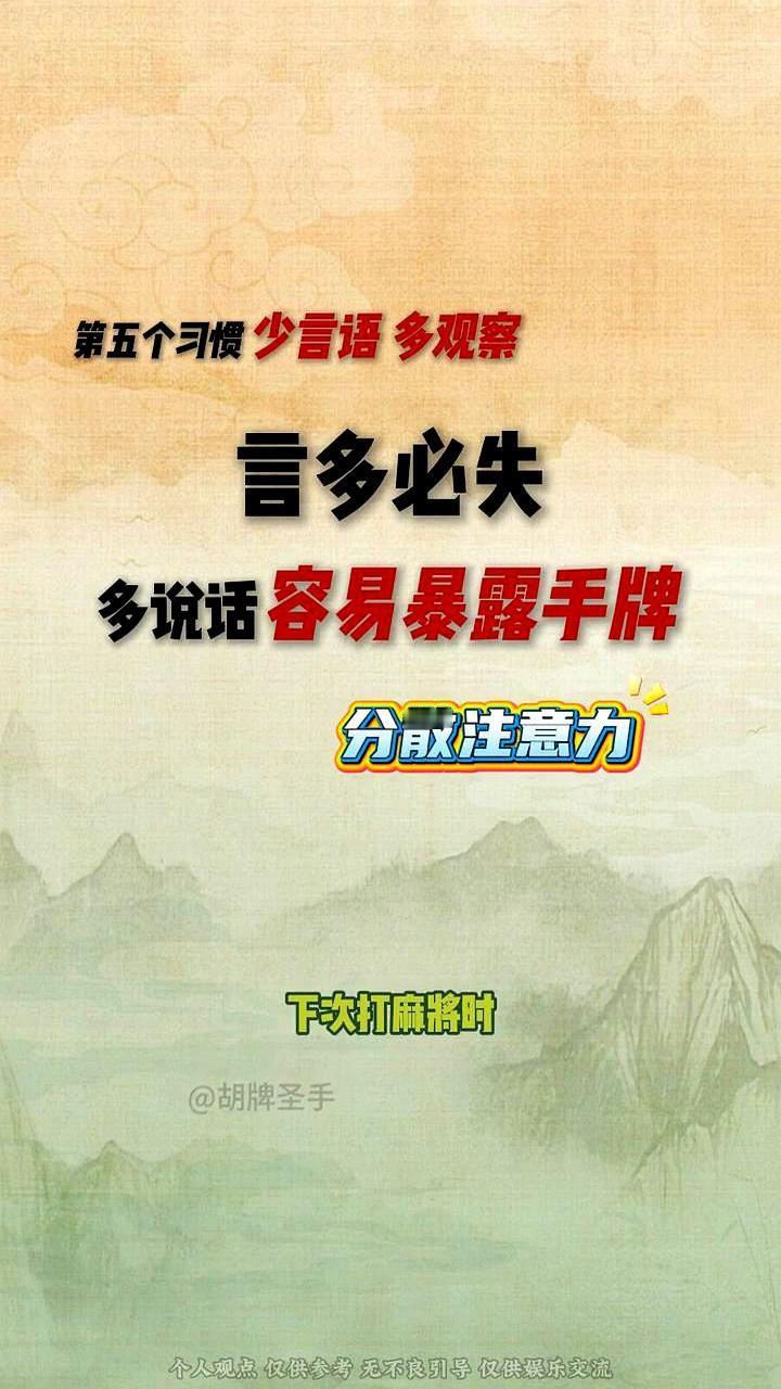 麻将高手,都是“装”出来的。 你看他摸牌,手在半空总要停一秒。指节擦过牌背,不急着插进手里,先轻轻摆在右边。眼睛扫过下家,等那张废牌打出来,才不慌不忙把新牌归位。就这一秒,你猜不透他摸到的是宝,还是早就听牌在演戏。 牌桌上话多的人,底裤都被看穿了。高手只做两件事:盯住别人出牌的手,和收回手时那零点几秒的犹豫。你点烟时的一声叹气,你摸到好牌时瞳孔那一下放大,都是他算牌的密码。他打牌慢,不是算不过来,是在算你口袋里有几张“炮弹”。 别信什么运气。麻将打到最后,拼的是谁先变成“面无表情的机器人”。话最少的人,往往赢得最稳。
