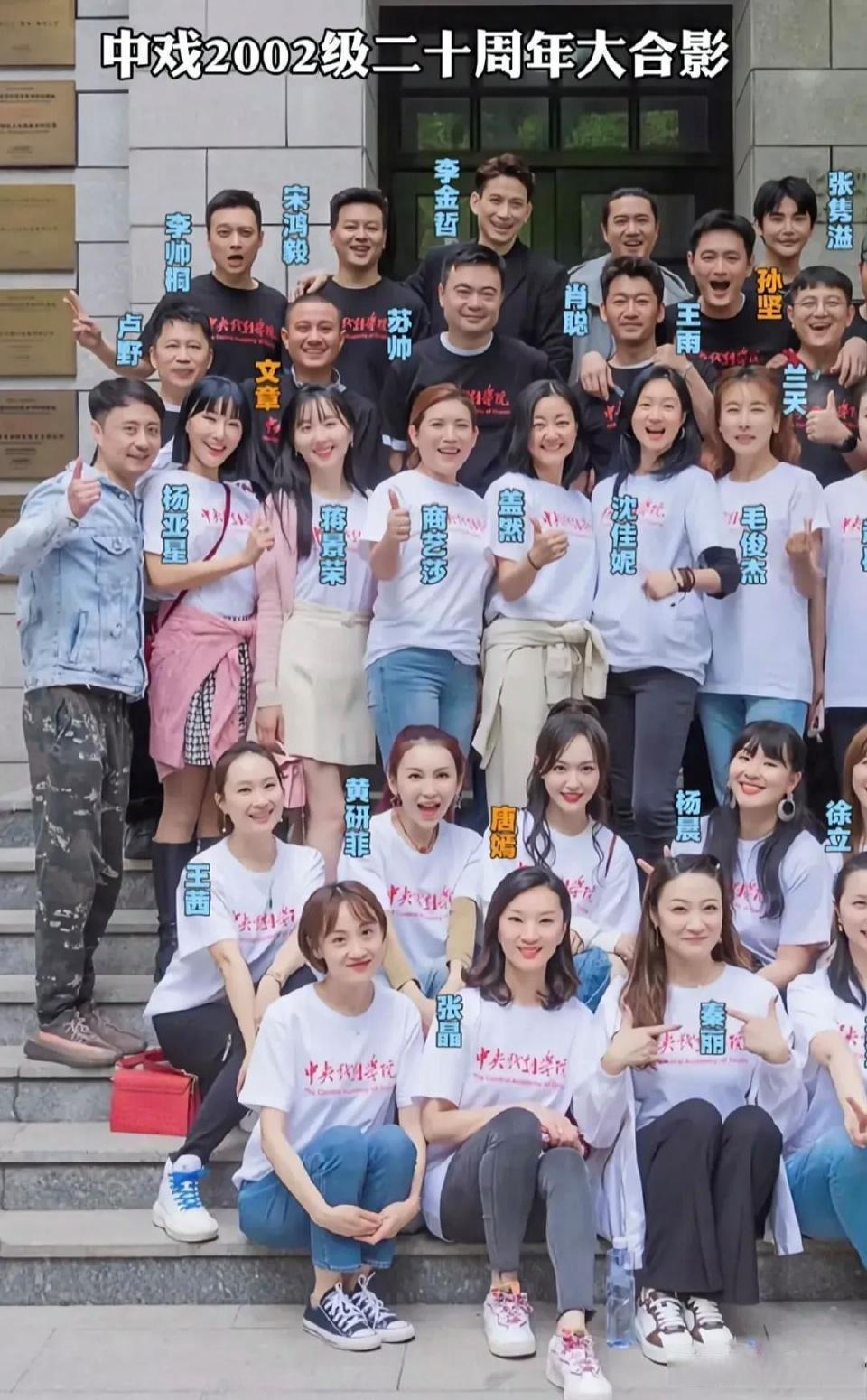 中戏2002级明星班返校忆青春。2023年,中央戏剧学院表演系2002级入学20周年返校活动圆满举行,这个被誉为“顶流明星班”的集体星光璀璨,白百何、唐嫣、童瑶、杨烁、文章、孙坚、毛俊杰、郭珍霓等一众知名演员悉数回归,42位校友与恩师重聚母校。