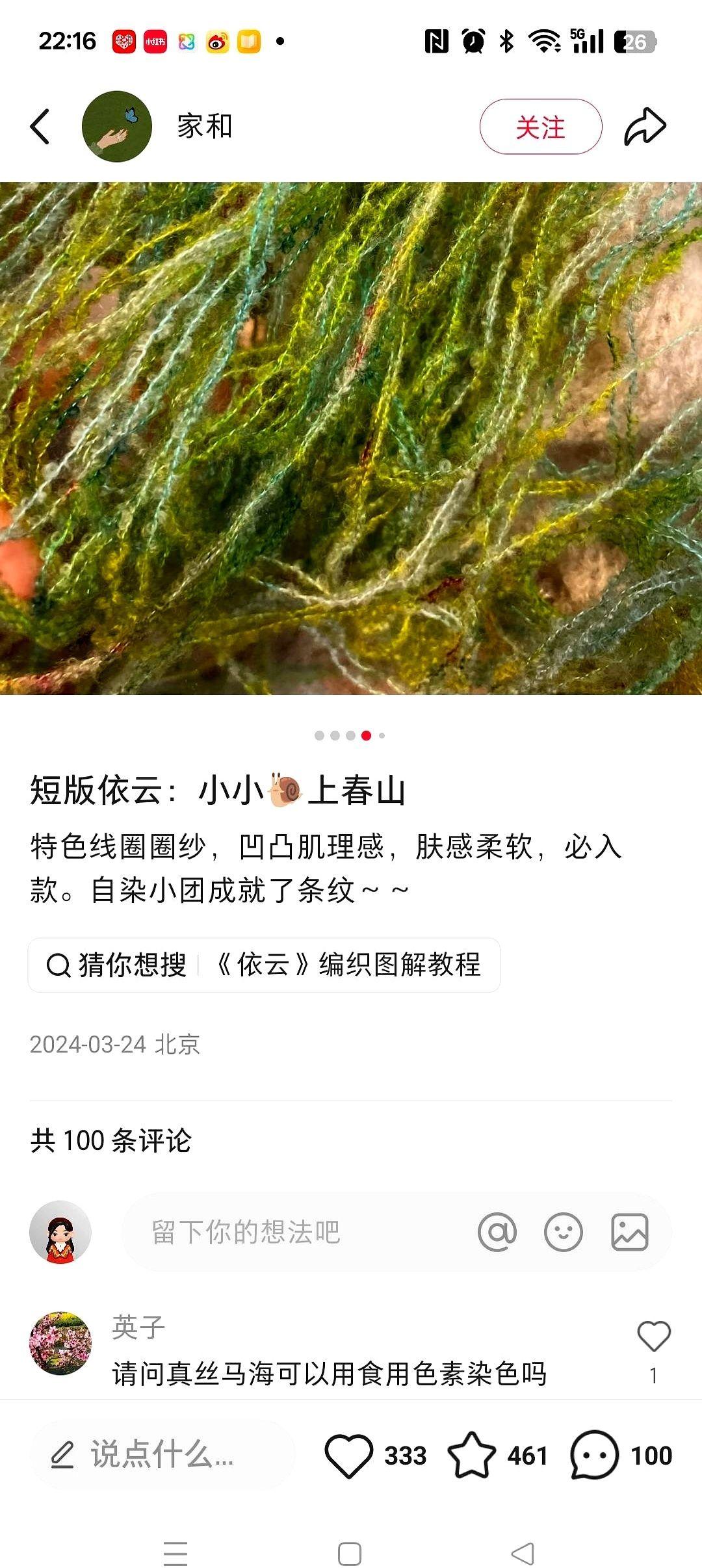 刷到一件毛衣,我直接愣住了三秒。 不是因为款式多好看,也不是因为手工多牛逼。 是因为,这毛衣的每一根线,颜色都是人家自己亲手染的。 你懂那种感觉吗? 我们买毛线,是挑别人给好的颜色。人家是,我想要什么颜色,这个世界就得有什么颜色。 这已经不是织毛衣了,这是在创造一个属于自己的色彩宇宙啊。 那种有点毛茸茸、一圈一圈的线,本身就自带一种温柔的故事感。 再被主人赋予独一无二的色彩生命…… 我的天。 这哪里是穿在身上的衣服,这分明是穿在身上的一个春天,一段心情,一个独家记忆啊。 真的,有时候觉得,所谓的生活品质,跟钱多钱少关系不大。 真正的奢侈,是把时间和心意,“浪费”在这些不被定义的,只为取悦自己的事情上。