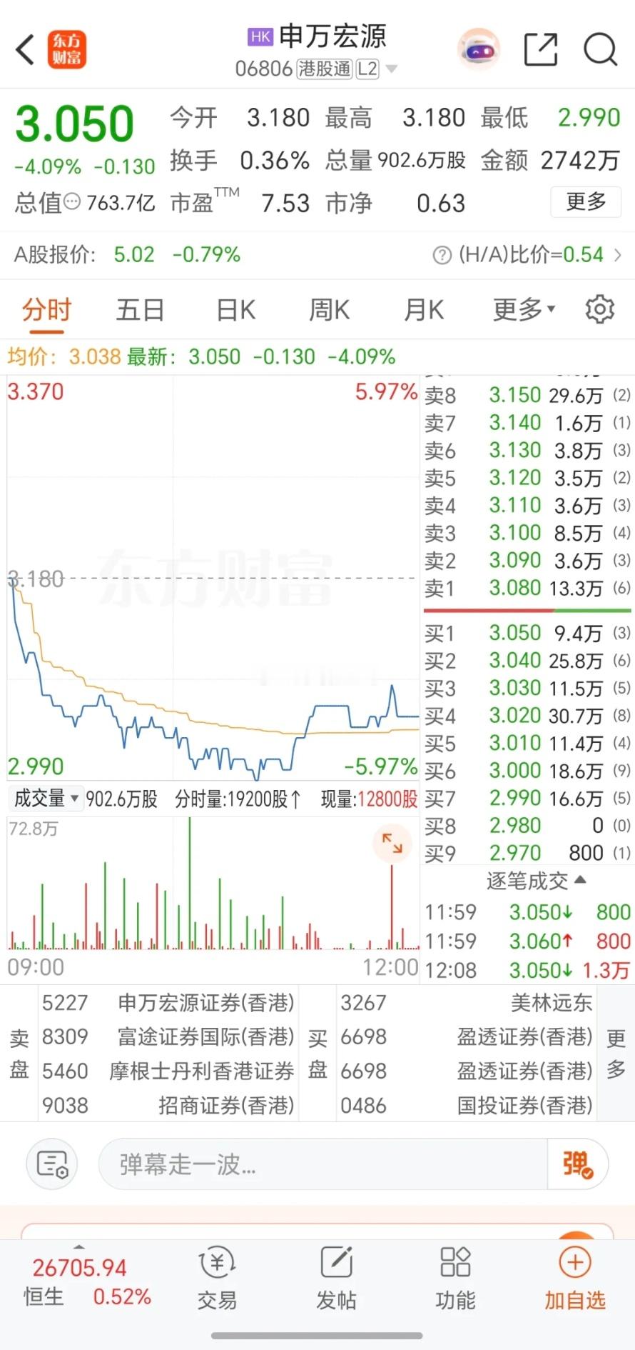 港股开盘:券商股大跌!