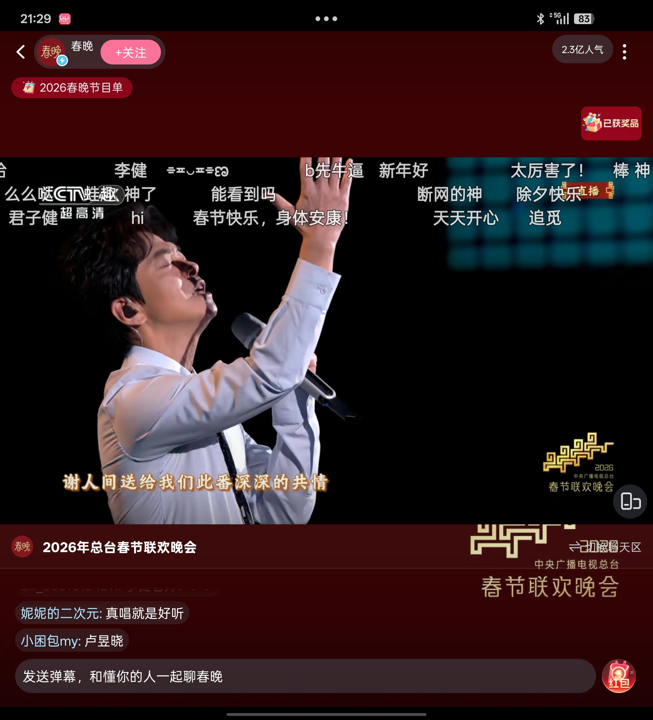 李健开净化了!!!被李健声音彻底治愈了啊啊啊!春晚弹幕B站弹幕