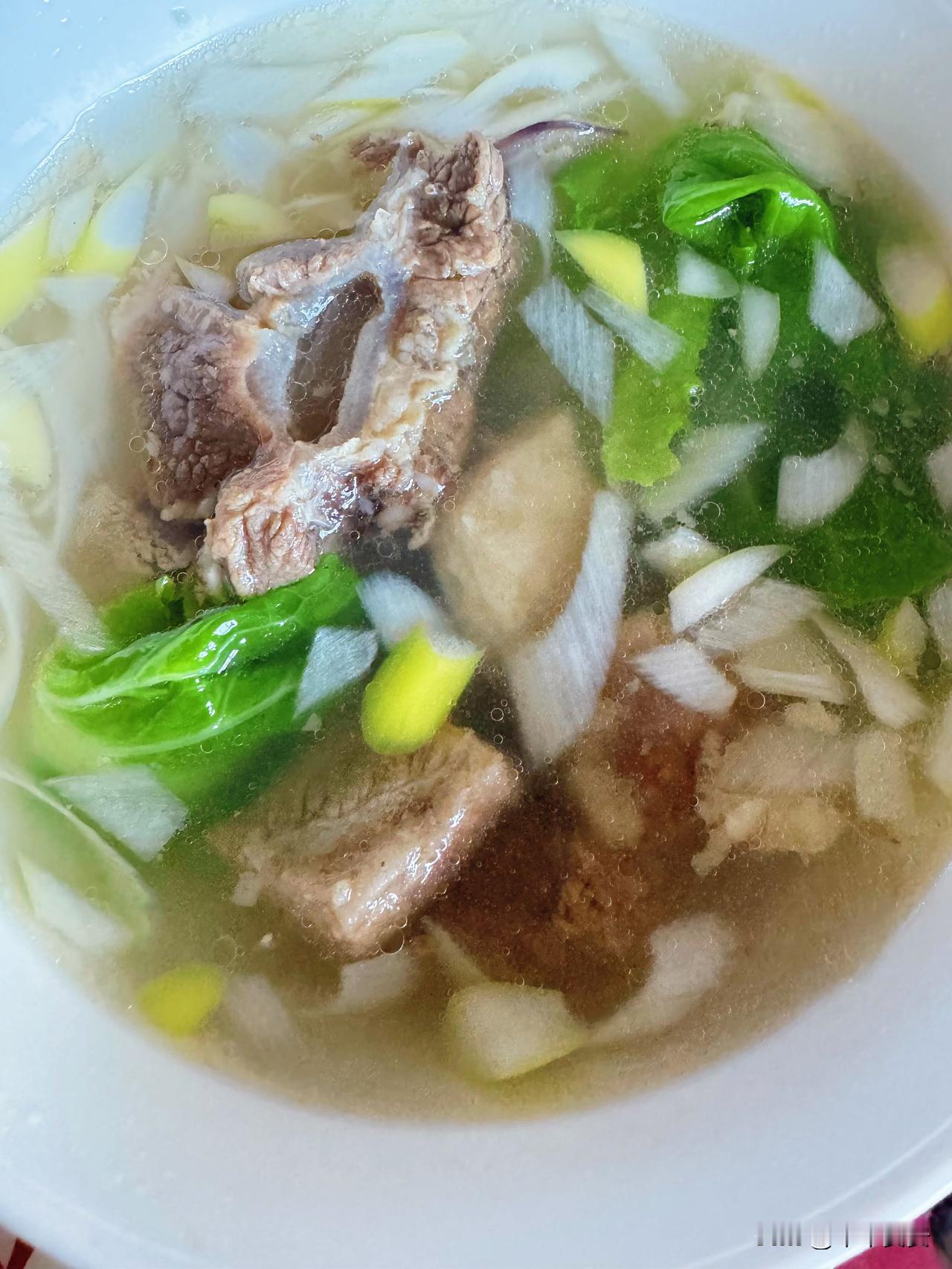 回到老家的清晨,空气里还飘着熟悉的烟火气,推开门就闻到了浓郁的肉香。老公系着围裙在厨房忙碌,转身端出一碗热气腾腾的牛肉汤,笑着说:“快尝尝,我特意给你做的。” 汤里的牛骨炖得软烂,轻轻一抿就能脱骨,汤色清亮却醇厚,每一口都带着牛肉的鲜香。翠绿的青菜、细碎的葱花和洋葱丝点缀其间,让整碗汤看起来格外温暖。我捧着碗,指尖传来的温度顺着掌心蔓延到心底,连呼吸都变得柔软起来。 这碗汤没有复杂的调味,却藏着最踏实的牵挂。他记得我偏爱清淡的口感,记得我喜欢牛肉的紧实,把所有的在意都熬进了这锅汤里。 原来被爱从不是惊天动地的誓言,而是有人愿意为你洗手作羹汤,把平凡的日子熬成最暖的时光。[比心]